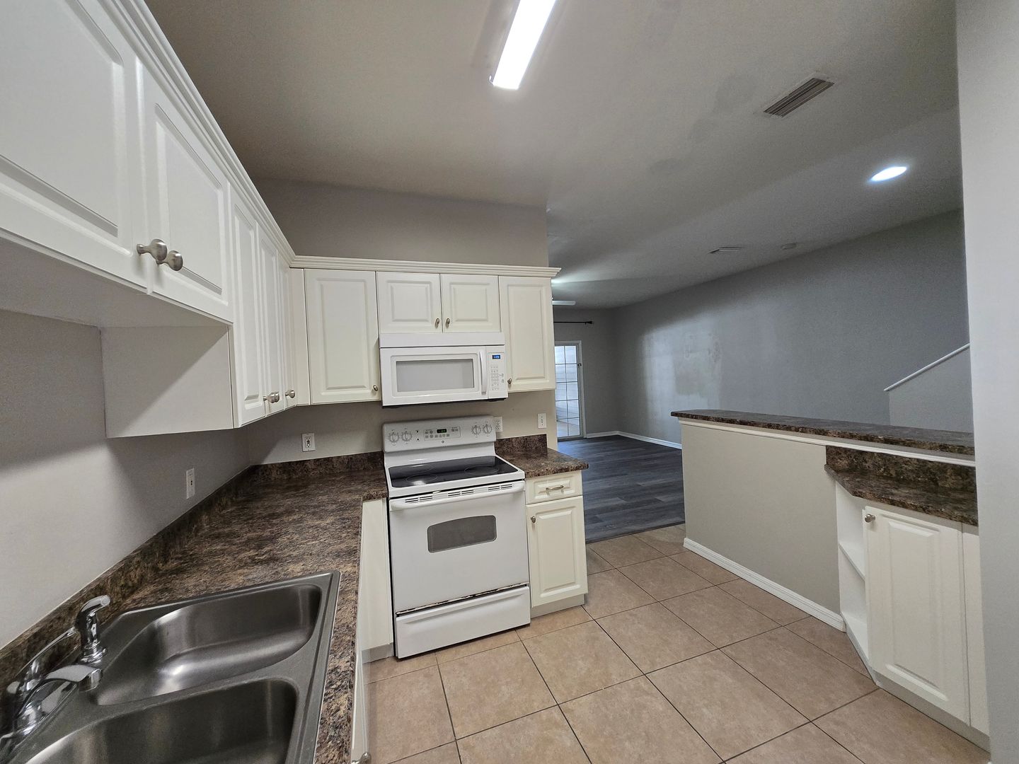 Charming and updated two-story townhome located in the desirable Eagle Trace community, conveniently close to UF, Shands, schools, shopping, and restaurants. The home features a tiled entry and a half bath downstairs with a single-sink vanity and tiled flooring. The beautiful kitchen offers ample cabinet and counter space and comes equipped with white appliances. A spacious, carpeted living room opens to a large screened-in porch with an additional storage closet — perfect for relaxing or extra storage needs. Upstairs, you’ll find two master bedrooms, each with walk-in closets. The first bedroom includes a tub/shower combo and single-sink vanity. The second features double-sink vanities, tiled floors, and a walk-in shower. An upstairs office or sitting area provides flexible extra space, ideal for working from home or a cozy reading nook. Additional features include a washer and dryer closet with connections and extra storage, a one-car garage, and abundant closet and storage space throughout the home. Community amenities include a pool, fitness center, and clubhouse. Pets are welcome. Square footage: 1,537 sq ft (not including porch and garage) **PROOF OF RENTER'S INSURANCE REQUIRED