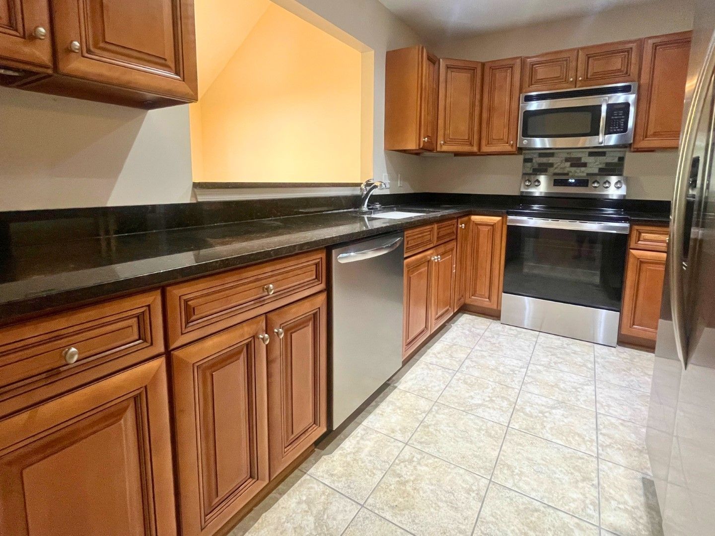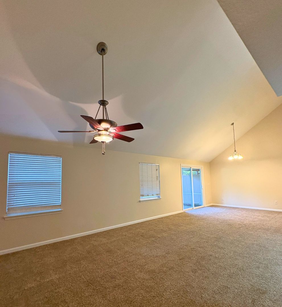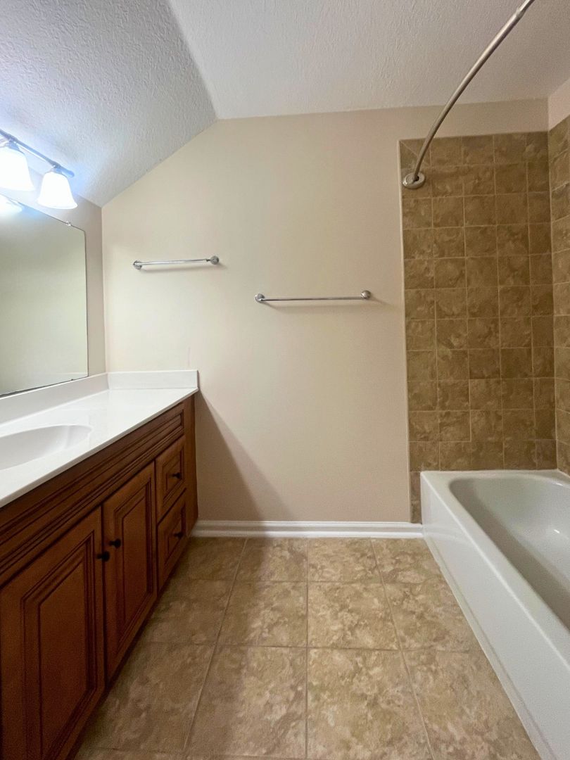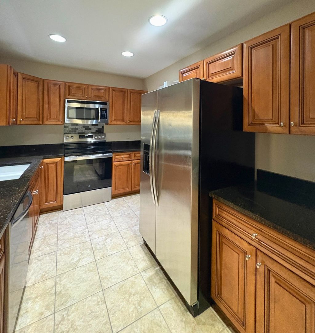 This split-level townhome in the Ryleigh’s Way neighborhood is move-in ready and full of charm. It features fresh interior paint, 3 bedrooms, 2 full & 1 half bathrooms, and approximately 1,575 sqft. of living space. The main living area has vaulted ceilings that make the space feel open and bright, and loft area overlooks living room. The dining area opens to a screened-in porch through sliding glass doors. The kitchen has granite countertops, stainless steel appliances, tile flooring, and rich cherry cabinets. You’ll find a laundry room just off the one car garage that leads straight into the kitchen—super convenient for everyday life. The primary bedroom and attached bathroom are on the main floor, along with a guest half-bath. Upstairs, there are two bedrooms and a full bathroom.