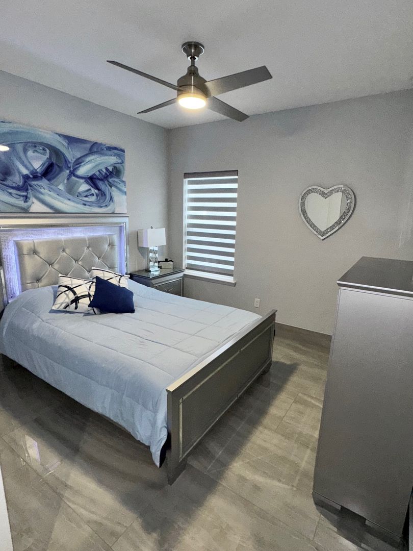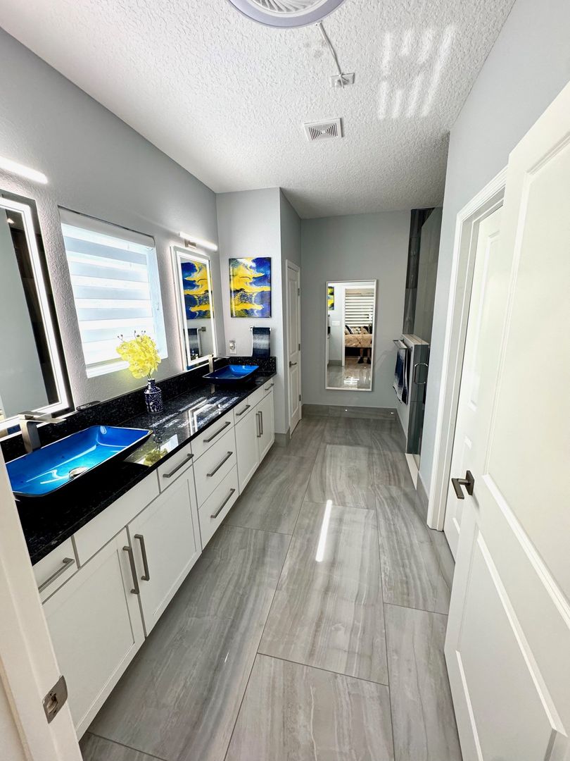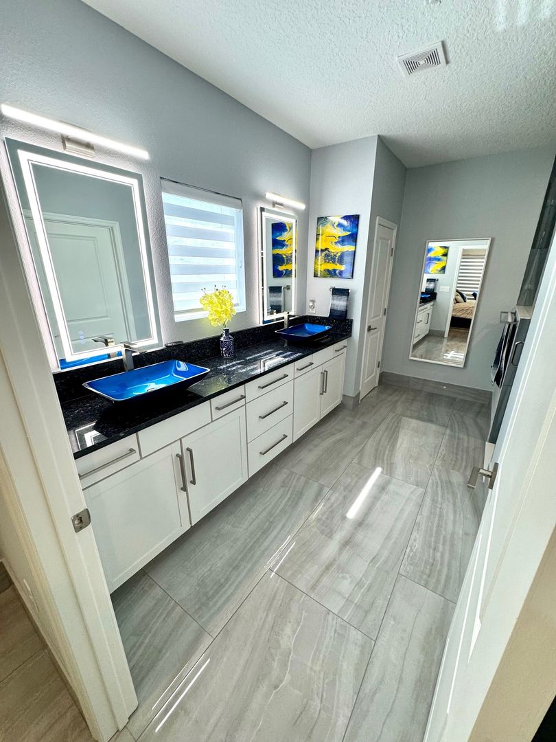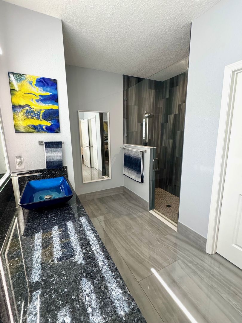 The primary bedroom suite is very spacious and will fit your king size bedroom suite comfortably. Your primary bathroom includes dual granite vanities with glass vessel sinks, backlit mirrors, dual showerheads, and bench seating. The other 3 bedrooms are generously sized plus a Flex room which can be used as a home office/Gym. Additional features include a custom-built lounge, a laundry room with custom cabinetry, sink, and dual LG Wash Towers, you will enjoy having a vinyl fence that will offer you plenty of privacy while barbecuing in backyard. This home will not last long. Make your appointment today and make this house your home for the holidays.