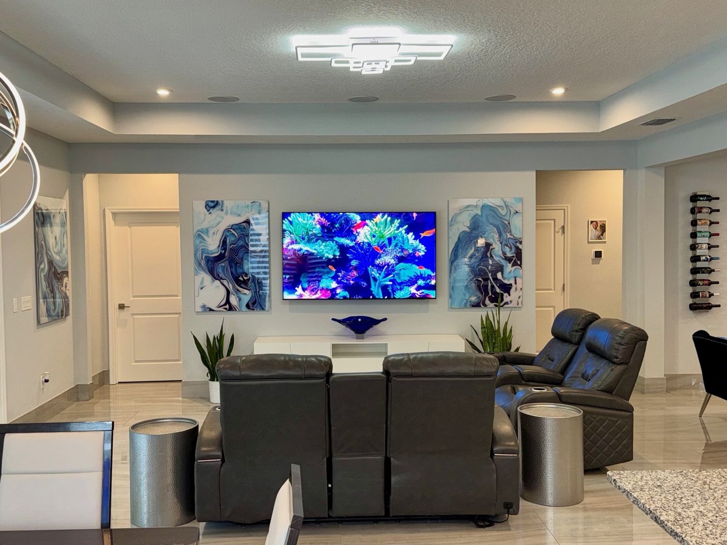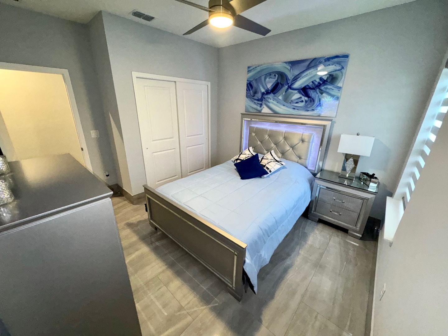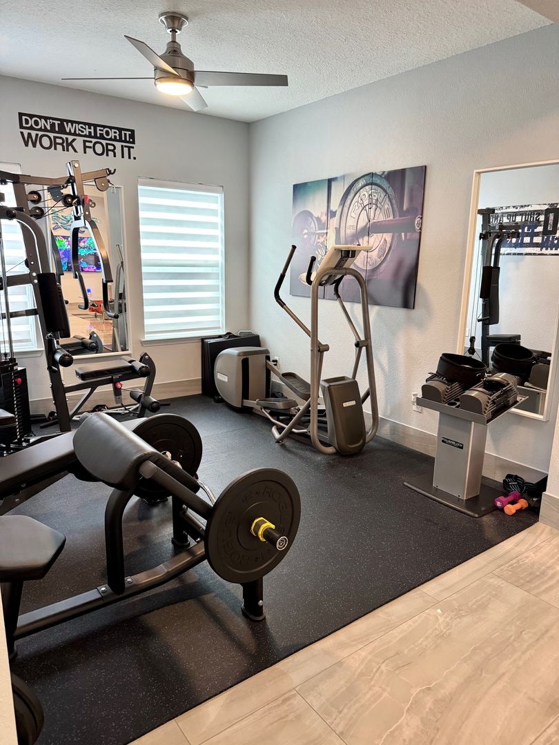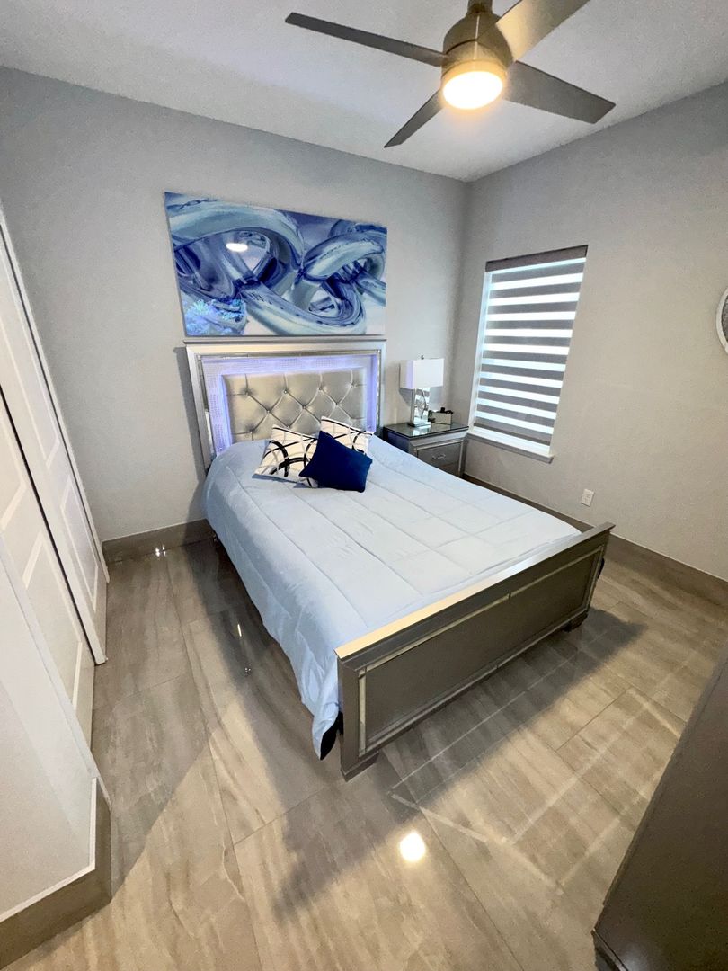 The primary bedroom suite is very spacious and will fit your king size bedroom suite comfortably. Your primary bathroom includes dual granite vanities with glass vessel sinks, backlit mirrors, dual showerheads, and bench seating. The other 3 bedrooms are generously sized plus a Flex room which can be used as a home office/Gym. Additional features include a custom-built lounge, a laundry room with custom cabinetry, sink, and dual LG Wash Towers, you will enjoy having a vinyl fence that will offer you plenty of privacy while barbecuing in backyard. This home will not last long. Make your appointment today and make this house your home for the holidays.