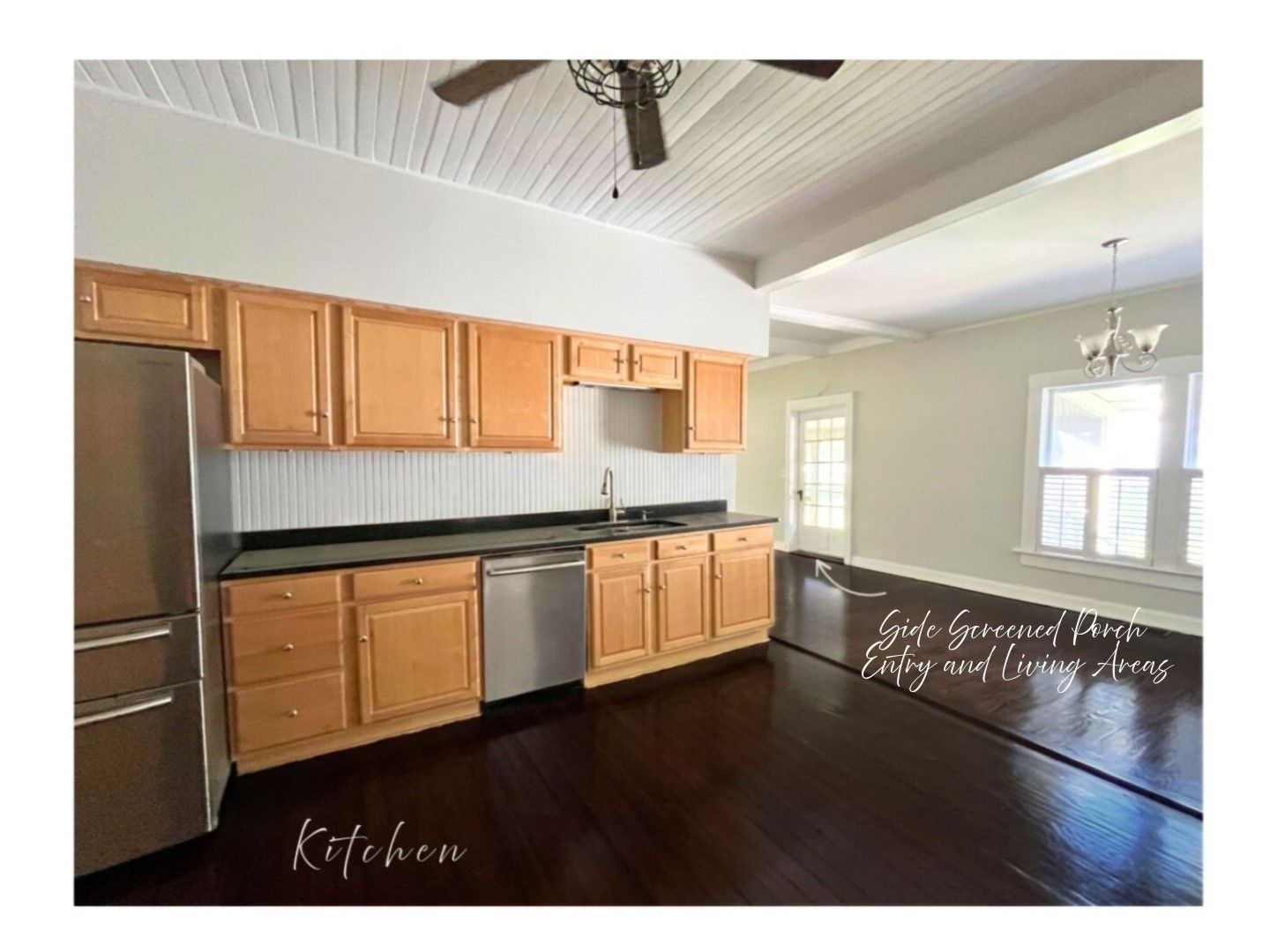 An additional 840 sqft of covered porches surround the house on 3 sides, including a large, screened side porch and classic southern front porch with double swings. Unfinished attic space upstairs allows additional 280 sqft of storage plus a separate 2 car garage located next to house. All new stainless-steel appliances. Lawn Maintenance is included in rent. Pet Friendly. Located in a quiet, walkable neighborhood perfect for biking and golf carts. It rests just two blocks from the St Marys Waterfront, Parks, the Ferry to Cumberland Island National Seashore, and more.