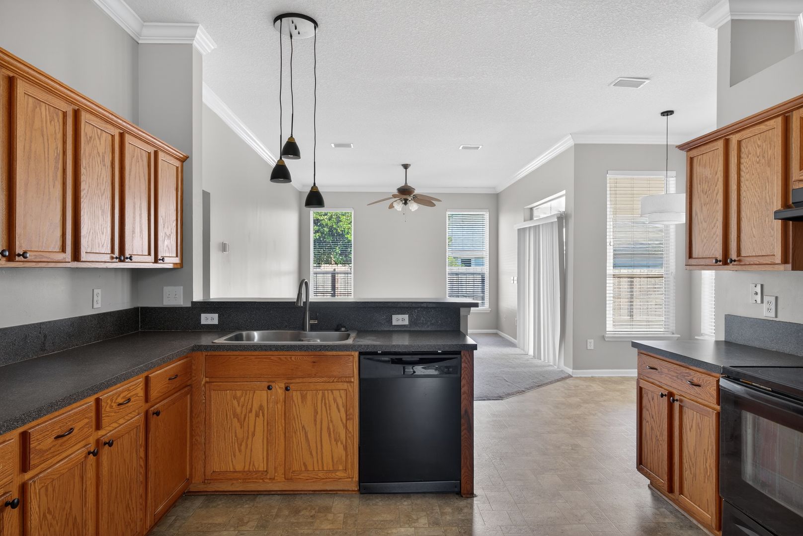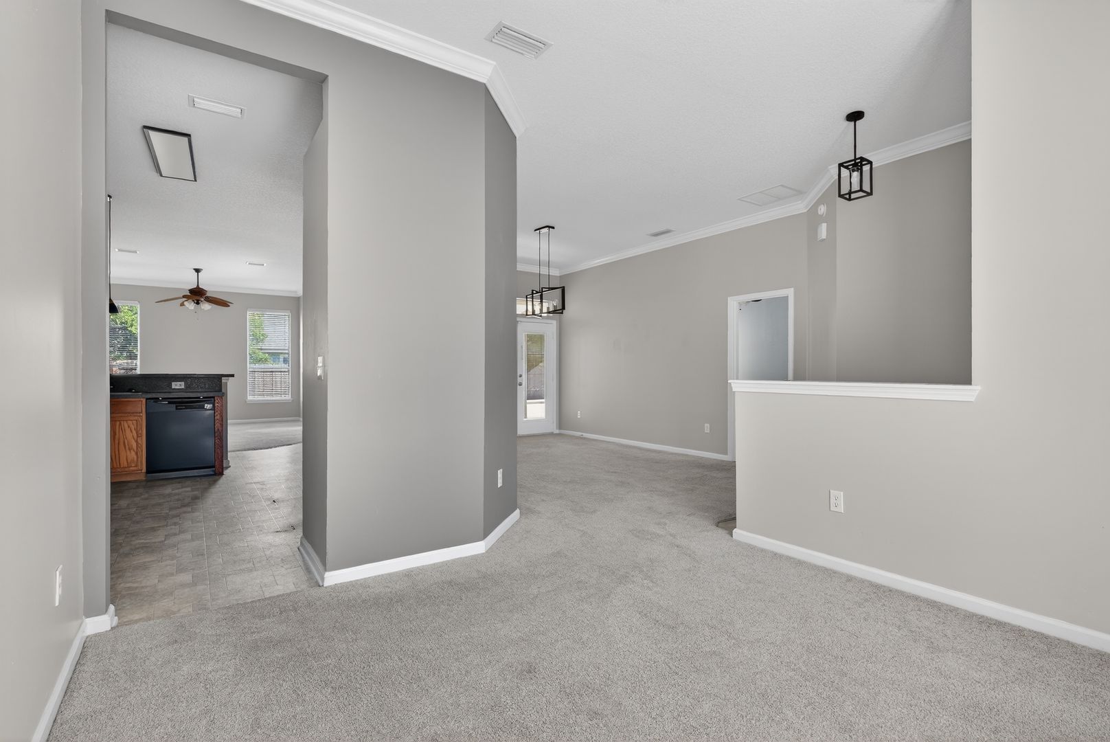 Beautiful 4-bedroom, 2-bath home located in Eagles Hammock, offering approximately 2,274 square feet of open living space. This well-designed floor plan features neutral paint and carpet throughout, along with formal living and dining rooms—perfect for entertaining. The spacious eat-in kitchen includes a breakfast bar and overlooks the main living areas. The split-bedroom layout provides privacy, with the owner’s suite featuring a large bathroom and his-and-hers closets. Three generously sized guest bedrooms share a full guest bath. Additional features include a separate laundry room, two-car garage, washer and dryer included (as-is), and a fenced backyard with a screened porch—ideal for outdoor relaxation.
