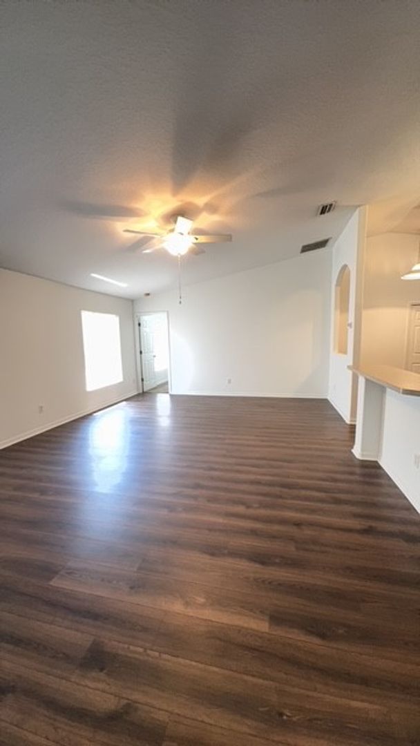 Lovely Lehigh Woods home with Lots of living space in this 3 bedroom, 2 bath home. There's a formal living room, formal dining room, and the kitchen opens to a large family room. Great vinyl plank flooring in living areas and new carpet in the bedrooms. The eat-in kitchen features a pantry and island sink with a breakfast bar. Huge Pantry Closet and wonderfully large laundry room. Master suite includes a walk-in closet, soaking tub and separate shower. Enjoy the outdoors from the screened, roofed lanai or in the shady backyard.