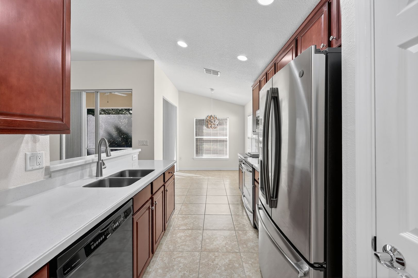 Live the Lifestyle You Deserve in this immaculately maintained 3-bedroom, 2-bath home in the sought after Del Webb 55+ gated community, “Sweetwater”, located in the prestigious Deerwood section of Baymeadows. Step inside to a bright, open floor plan that seamlessly connects the kitchen, dining, and living areas perfect for everyday living and entertaining. The Kitchen features Stainless Steel appliances, Corian countertops, a cozy breakfast nook, and panoramic views of the nature preserve from the fenced-in back yard. Triple sliding glass doors open to a screened lanai and generous patio, offering a serene outdoor retreat ideal for relaxing or hosting guests. The spacious primary suite boasts double vanities, a large walk-in shower, providing both comfort and convenience. The two additional bedrooms are very spacious and should fit any bedroom suite. This Gated community provides peace of mind for residents and is known for its vibrant lifestyle and amenities tailored for active adults boasting a 22,000 square foot Community Clubhouse including Golf Cart parking for social activities, scheduled events, and gatherings, billiard and crafts rooms; Ballroom with dance floor; Fitness Center; beautifully landscaped resort-style outdoor swimming Pool; Indoor spa and pool with lap lanes, water volleyball, and aqua aerobics; Scenic paths and bridged trails for walking, jogging, or biking; Tennis and Pickleball Courts; events, clubs, and activities; 15 minute drive to the beaches, close to shopping, dining,