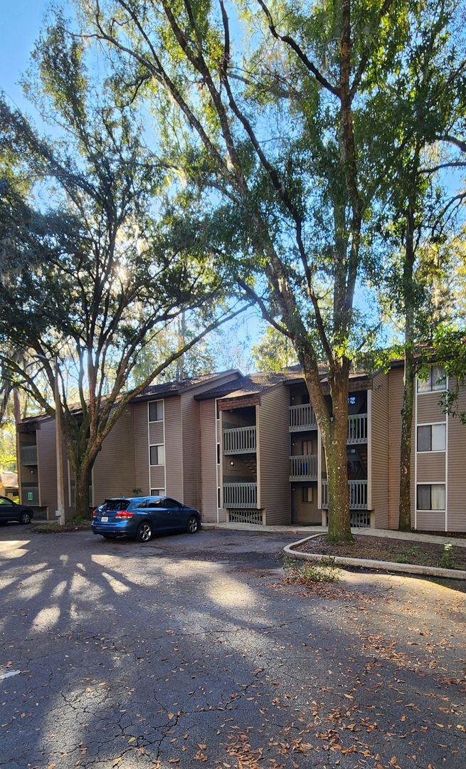 Welcome to Treehouse Village This beautifully updated 2-bedroom, 2-bathroom condo features fresh paint and brand-new carpet throughout. Located at the end of a quiet cul-de-sac and backed by peaceful woods, it offers both privacy and a serene setting. Inside, you’ll find two primary bedrooms, each with its own en-suite bathroom, ceiling fan, and extra-large double closets. A washer and dryer are also included for your convenience. Residents enjoy access to community amenities including a pool and fitness center. The location is exceptionally convenient, with easy access to the UF bus line and close proximity to the University of Florida, UF Health Shands Hospital, the VA Hospital, the UF Veterinary College, and Downtown Gainesville. **1 small pet is ok under 20 pounds **TENANT PLACEMENT WATSON DOES NOT MANAGE***