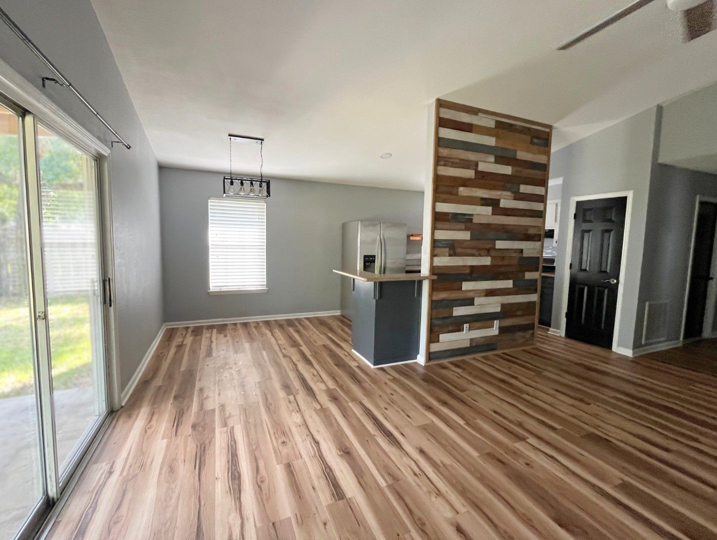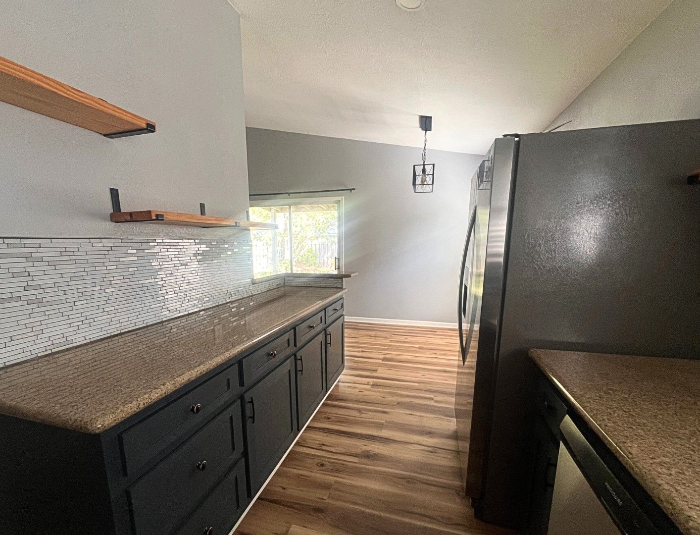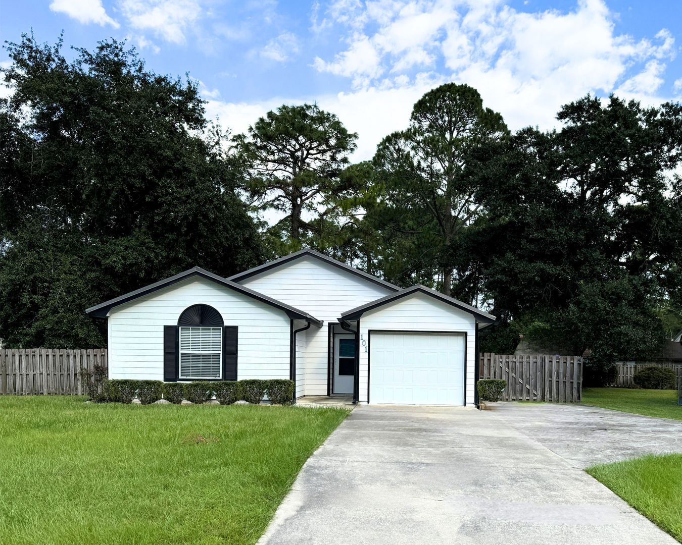 Beautifully maintained and move-in-ready home in St Marys, with lawn maintenance included. Property situated on large corner lot with spacious Fenced Backyard. This home features 3 comfortable bedrooms and 2 full baths, stylish fixtures and kitchen countertops, Luxury wood look Vinyl Plank flooring throughout for a modern, low-maintenance look, Open living and dining areas filled with natural light, 1-stall garage for parking or storage . Property situated on large corner lot with spacious Fenced Backyard. Approx 1155sqft. Located just minutes from Kings Bay Naval Base, schools, shopping, and easy interstate access. This property has special pet requirements- NO Cats, Limit 1 Dog, under 30lbs.