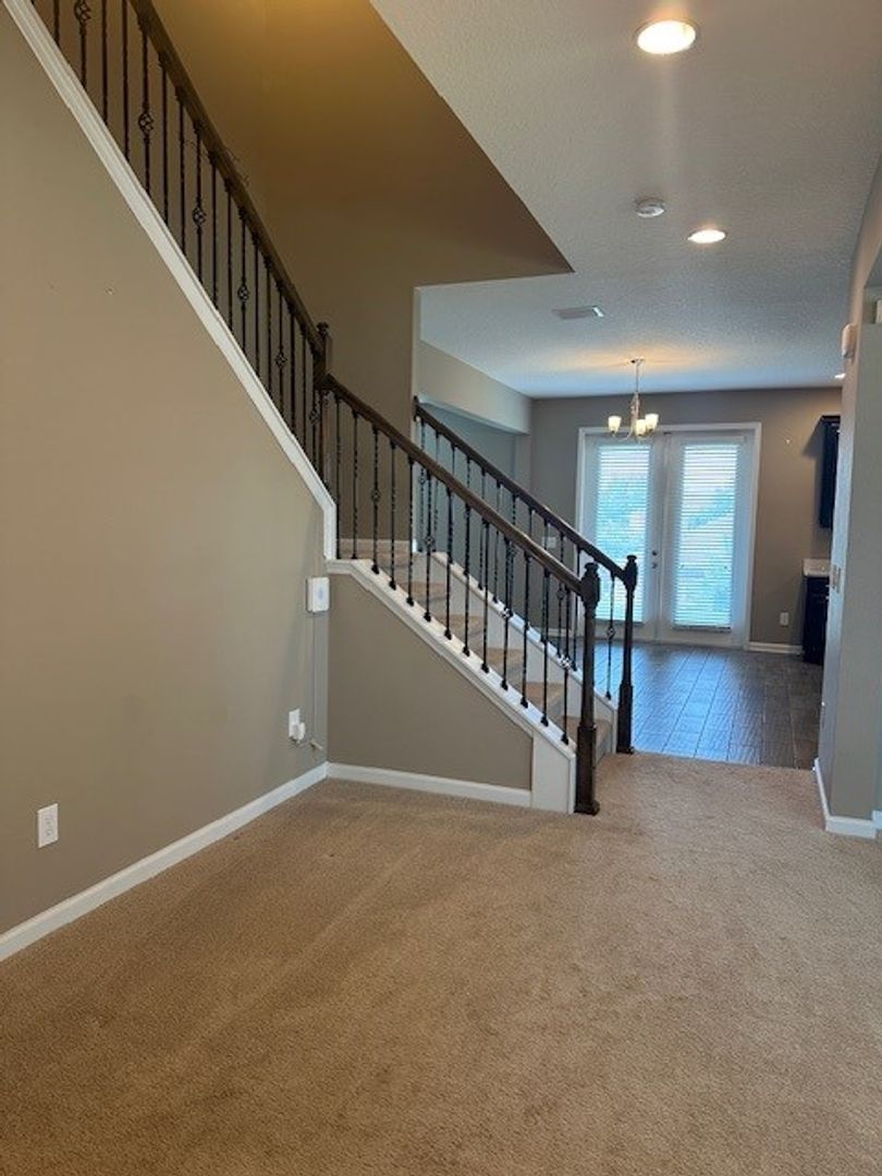 This beautifully maintained 5-bedroom, 3-bathroom home is located in the gated community of Eagles Landing at Westyn Bay. The home features an open-concept kitchen with upgraded stainless steel appliances, granite countertops, and a breakfast bar, spacious living area with tv included, and formal dining area. The first floor includes a guest bedroom and full bath, while the second floor offers a spacious loft, three additional bedrooms, guest bathroom, laundry room, and a refined primary suite with a large bathroom and two walk-in closets.
