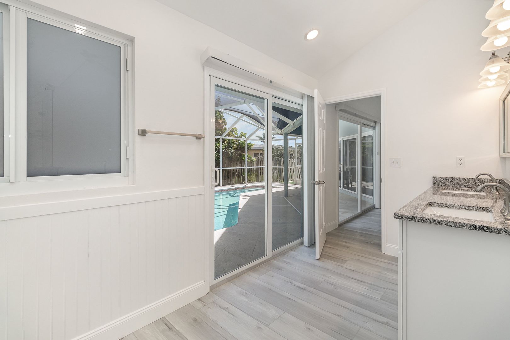 Available for move in 2/5/26. Are you looking for a beautiful retreat only a few blocks from the ocean? If so, this pool home would be perfect for you. This three bedroom and two bath pool home features a large open living area that is perfect for entertaining and for quiet evenings at home. The kitchen has granite counters and a large island that is perfect for interacting while preparing a dinner at home. The sliders look onto a nice screened in pool. There is a two car garage and the home sits on a cul de sac so you can enjoy the quiet neighborhood. Easy access to shopping and local businesses make this a truly enjoyable home. One small dog okay with a $300 nonrefundable deposit and a $50 pet fee per month. Pool service is included.
