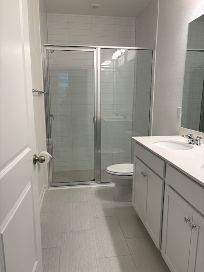 This two-story home features three bedrooms, two and a half bathrooms, a versatile bonus area, and a convenient first-floor owner's suite. A two-car garage provides ample storage. Interior highlights include wood-look tile in the main living areas, quartz countertops, a gourmet kitchen with stylish kitchen backsplash, floor-to-ceiling tile in the master bath, and a steel tub with tile surround in the secondary bath. The Sago floor plan offers 1,853 square feet of stylish and functional living space. Additional features include a tray ceiling in the loft and iron spindles on the staircase. Located in The Hammock a gated community, this neighborhood offers a clubhouse with a pool, hot tub, and party kitchen.