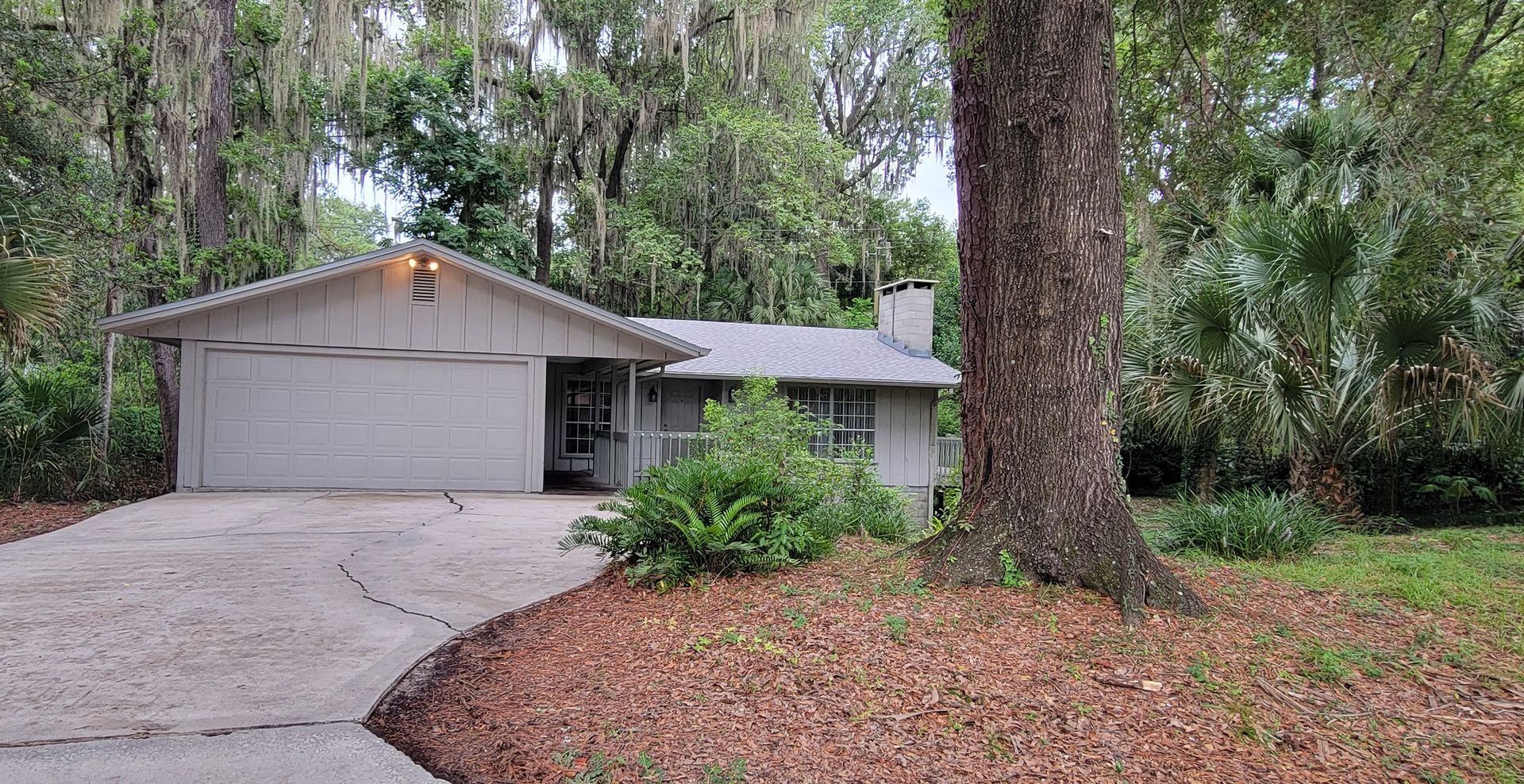 3/2 (Black Acres)very close to UF and shopping. Front porch opens into tiled entry and large living room with brick wood burning fireplace. Formal dining room off of Living room has sliding glass doors that leads to deck that wraps around the side and back of home and overlooks a lush landscaped yard. Big kitchen with ceramic tiled floors new cabinets and appliances and eat in space. Utility room off of kitchen has washer and dryer. Both bathrooms have all new ceramic tiled floors and showers and custom vanities. Sliding glass doors off the master bedroom leads to back deck. 2 car garage. Est. Sq. Ft. 1545.
