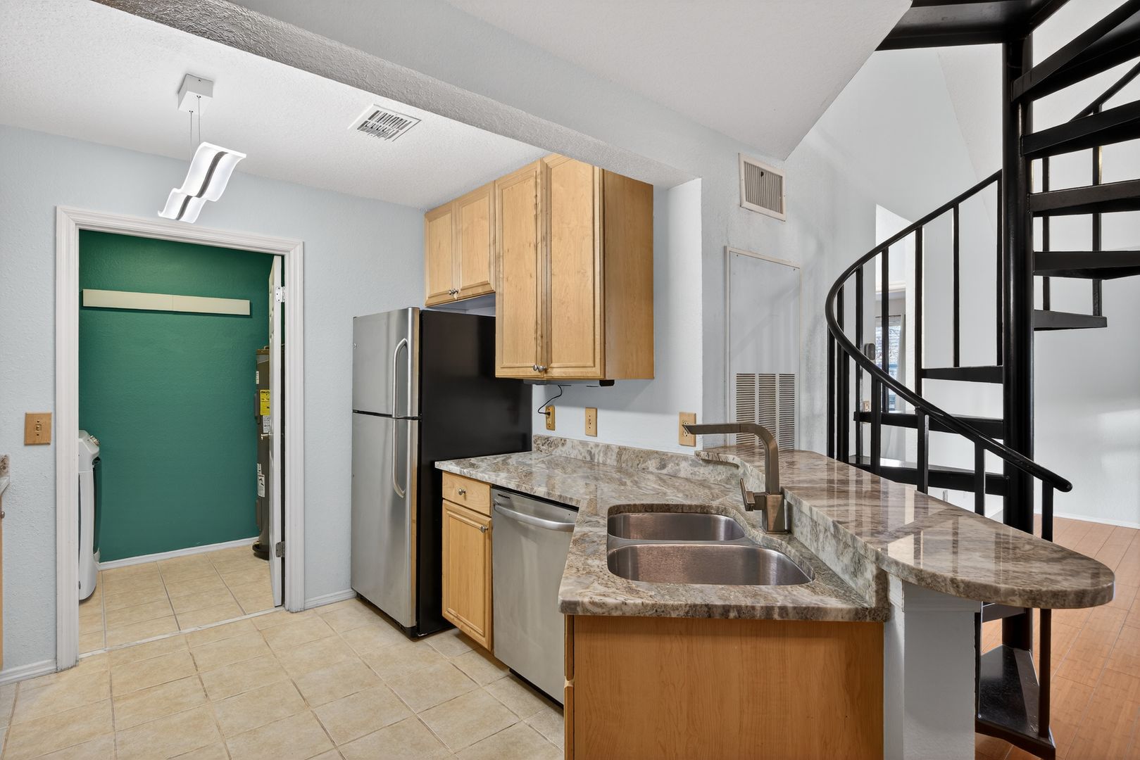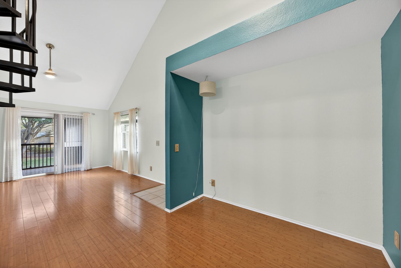 Welcome to this lovely 1-bedroom, 1-bath condo located in the highly desirable Ocean Grove community in Ponte Vedra. INCLUDES A ONE CAR GARAGE. This 2nd-floor unit features an open-concept floor plan with bamboo laminate flooring throughout and tile in the kitchen. A distinctive spiral staircase adds both character and functionality, leading to a generously sized loft ideal for a home office, or bonus room. This humble abode offers a bright and inviting living area, spacious bedroom, and the convenience of in-unit laundry; also enjoy your own private screened balcony, perfect for unwinding at the end of the day while you look out onto a tranquil pond. Residents of Ocean Grove have access to resort-style amenities including a pool, clubhouse, volleyball court, and private beach access. Unit is located just minutes from shopping, dining, and the beach! No smoking. Pets allowed with owner approval. All residents are enrolled in a Resident Benefit Package for $39.95 per month.