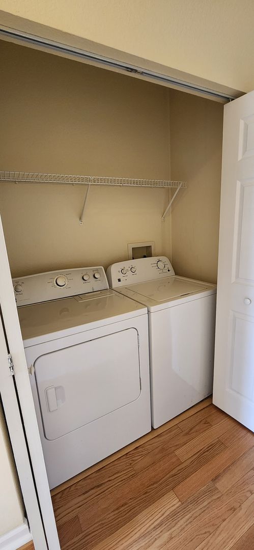 Beautiful 2 bedroom 2.5 bathroom townhome tucked away in the Magnolia Place and both bedrooms located on second floor. Appliances include fridge, stove, dishwasher, microwave. Washer and dryer included but as is. Magnolia Place has a community pool, a business center with computer access, a picnic area, a dog park, and a playground for the kids and a pool . One small pet allowed (under 30 pounds)