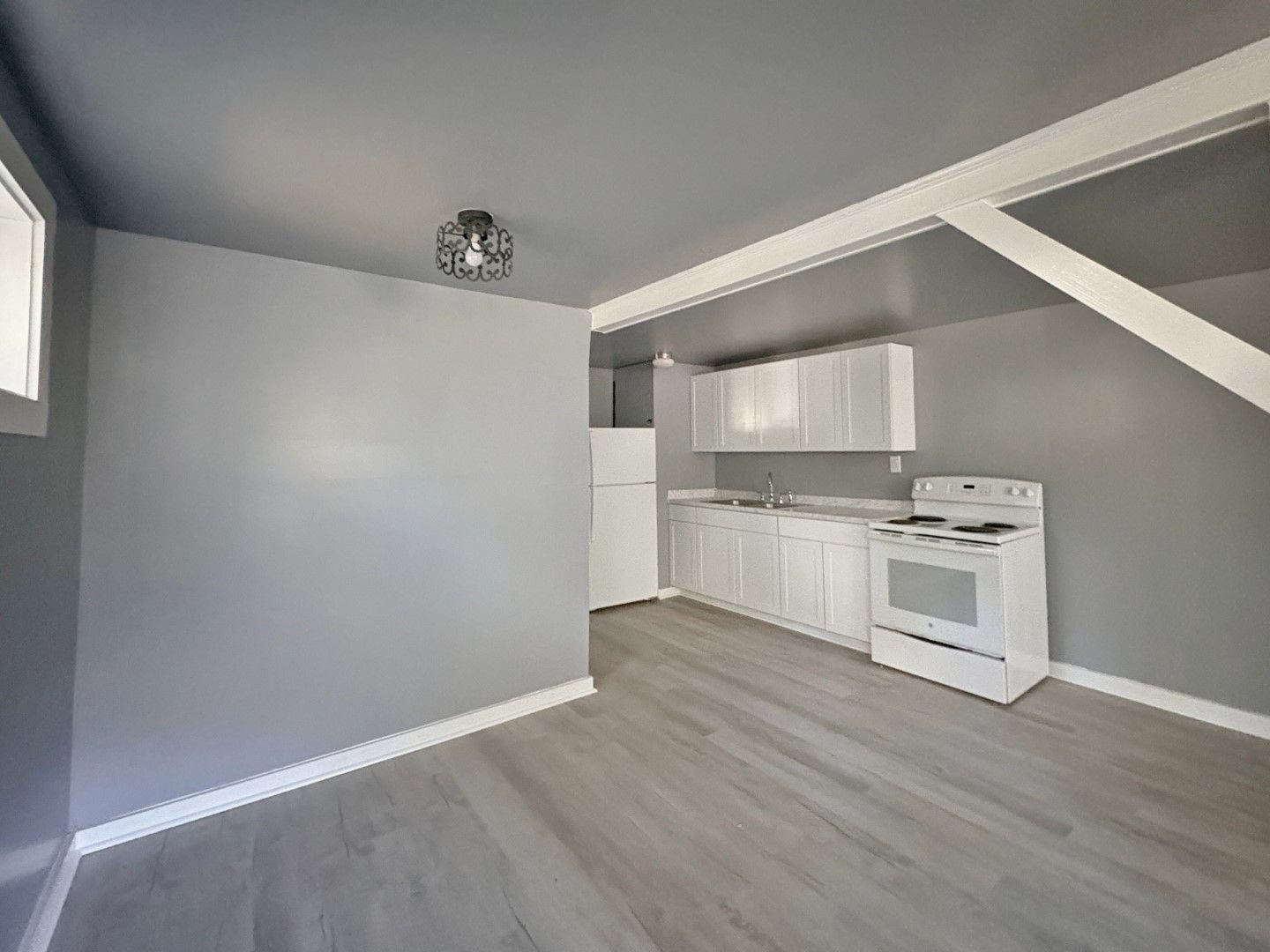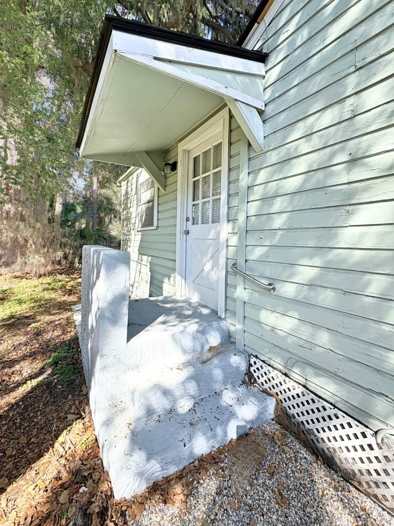 Spacious 1-bedroom, 1-bath private residence located within a charming cottage in the heart of Historic Downtown St. Marys. Approx. 800sq ft. Freshly painted with new wood laminate flooring throughout. Features an open kitchen and living area with full-size refrigerator, range/oven, and mini dishwasher. Private bedroom, full bath, and in-unit washer/dryer. Private entrance with off-street parking. Electricity included. Tenant responsible for water/trash and lawn maintenance.