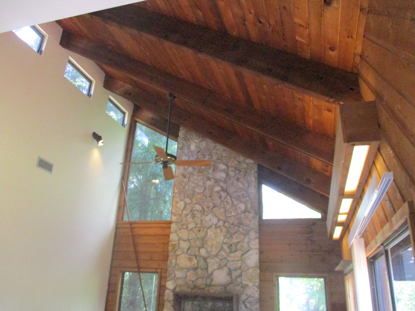 ( Oakcrest) 3/ 2 spacious home located in a great school zone, close to Santa Fe College and North Florida Regional Medical Center. Home has tall ceilings, exposed beams and stone fireplace adding lots of t character . Large living room space features plenty of natural light and sliding doors that lead to back deck and nice spacious fenced back yard. Kitchen has a large pantry and plenty of cabinet/ counter space. Master Suite features a large and spacious room, Private balcony that overlooks back yard & updated master bath. 2 car garage & Nice large deck. 2 bedrooms and bath downstairs. Master upstairs. Total sq ft to include garage and decks 2244 **Yard Maintenance included**