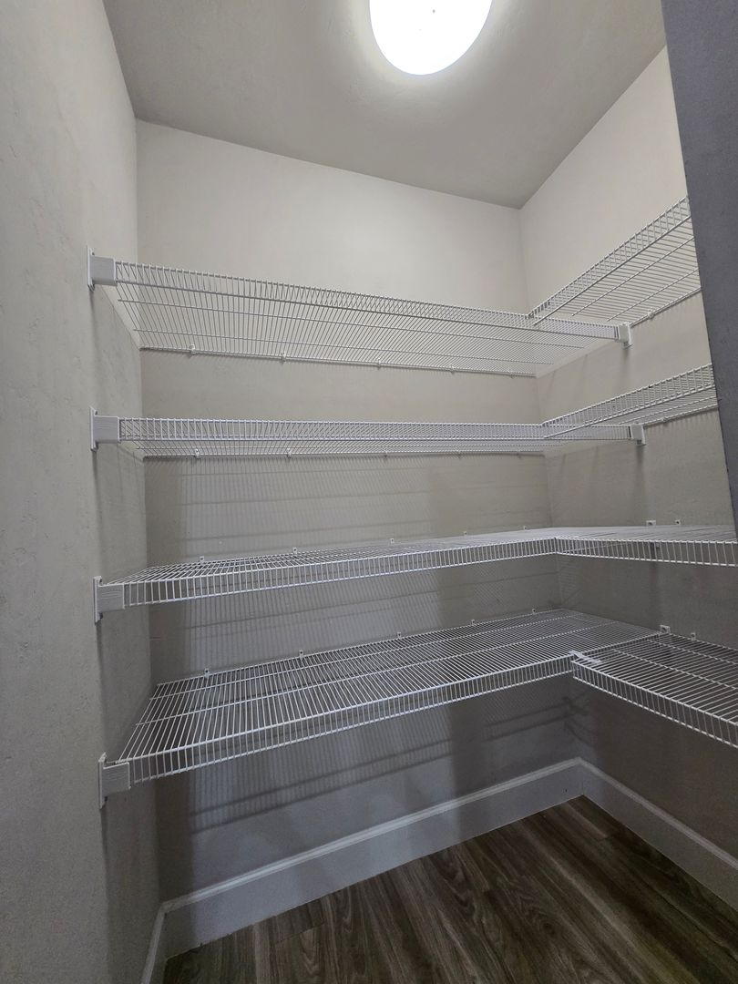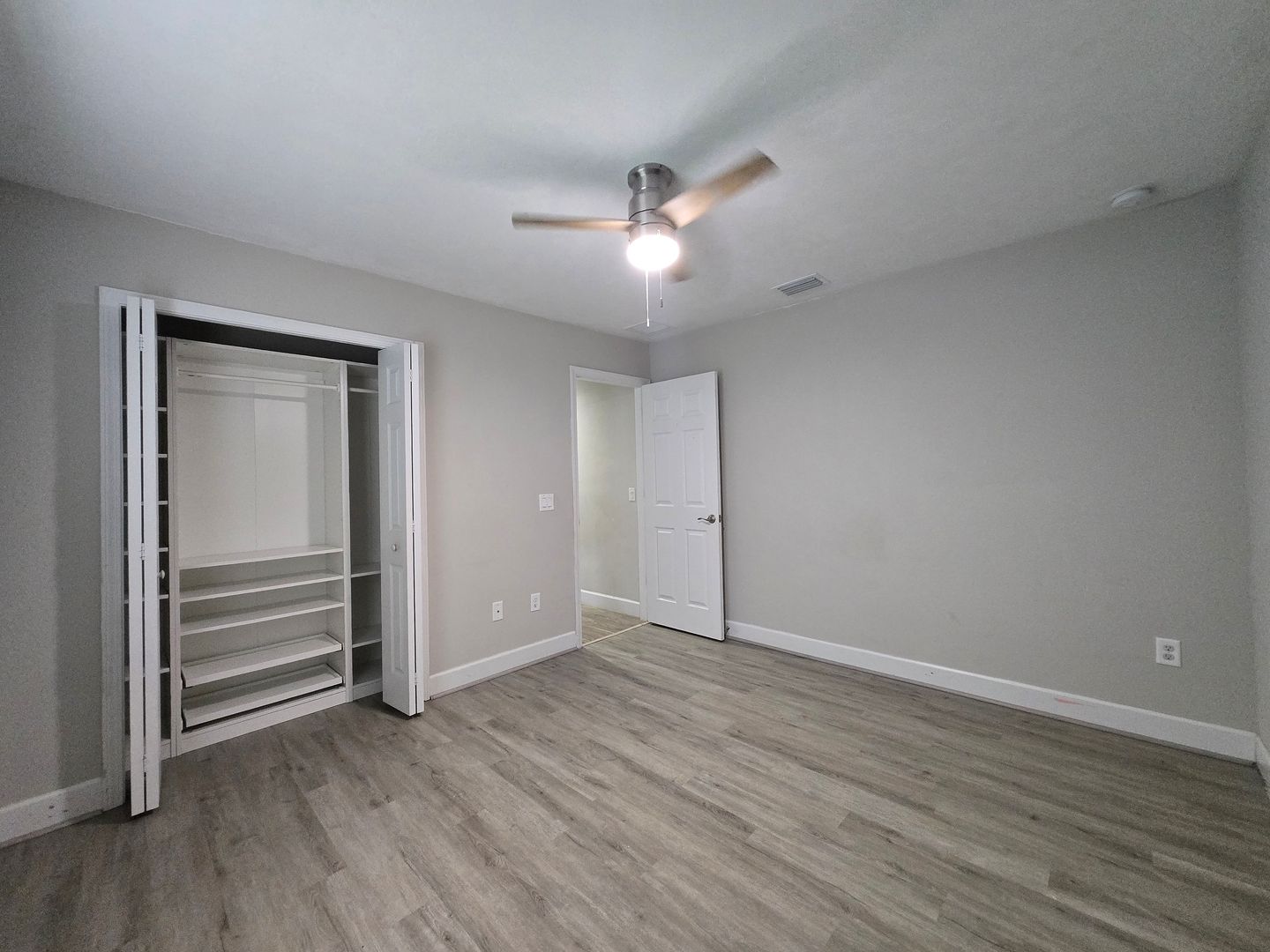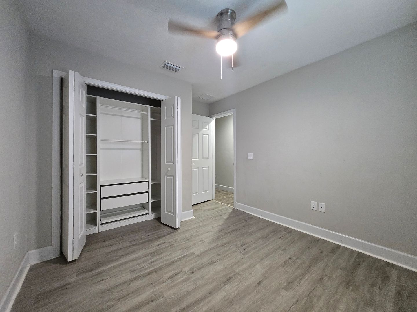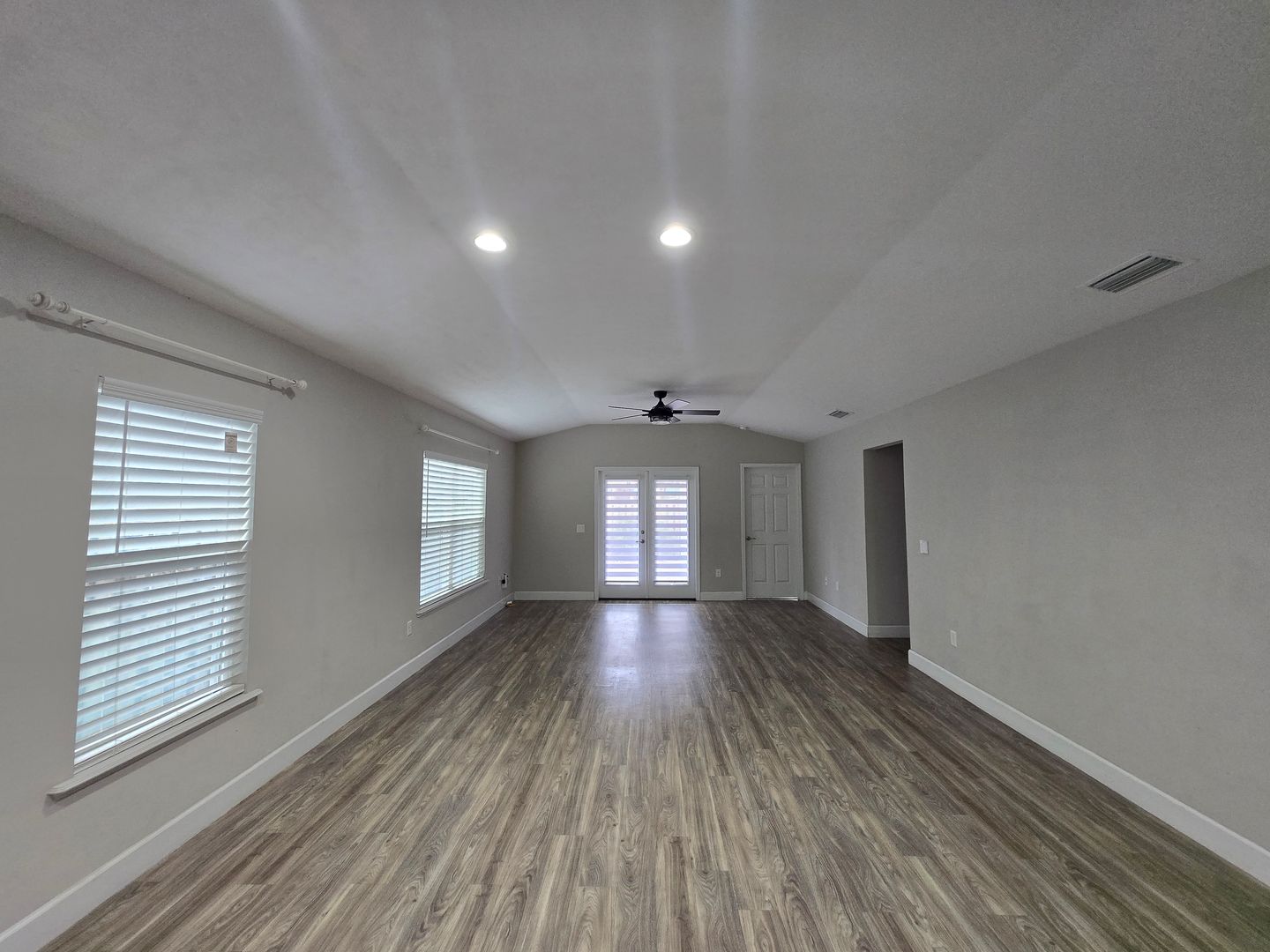The spacious living room has luxury vinyl plank flooring that flows seamlessly throughout the main living areas and bedrooms, offering both style and durability.