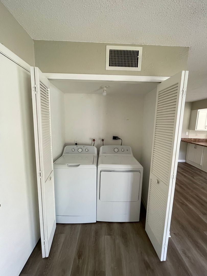 This 2-bedroom, 1.5-bathroom townhome offers comfort and convenience with modern vinyl plank flooring throughout—no carpet! Enjoy a covered front porch and private terrace patios off both bedrooms for outdoor relaxation. The unit includes a washer and dryer for your convenience. Pets are welcome, and all tenants are enrolled in our Resident Benefit Program for added value and peace of mind. Rent: $1,675/month. Don't miss this opportunity to live in a desirable Port Orange location!