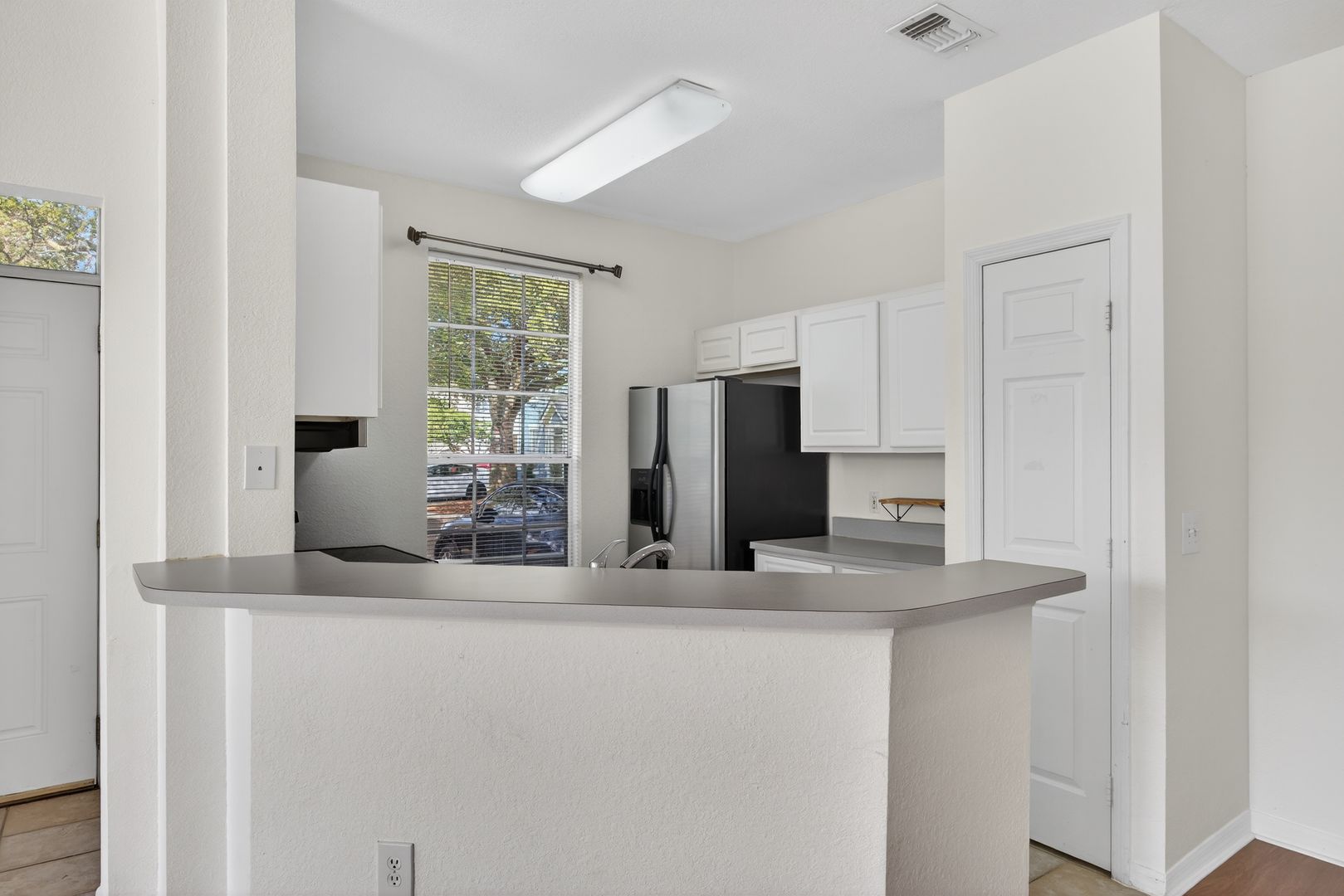You’ll love the laminate wood flooring throughout the main living areas—stylish, low-maintenance, and no carpet to worry about! The kitchen comes fully equipped with stainless steel appliances, including a microwave, dishwasher, stove/oven, and a side-by-side refrigerator with icemaker.