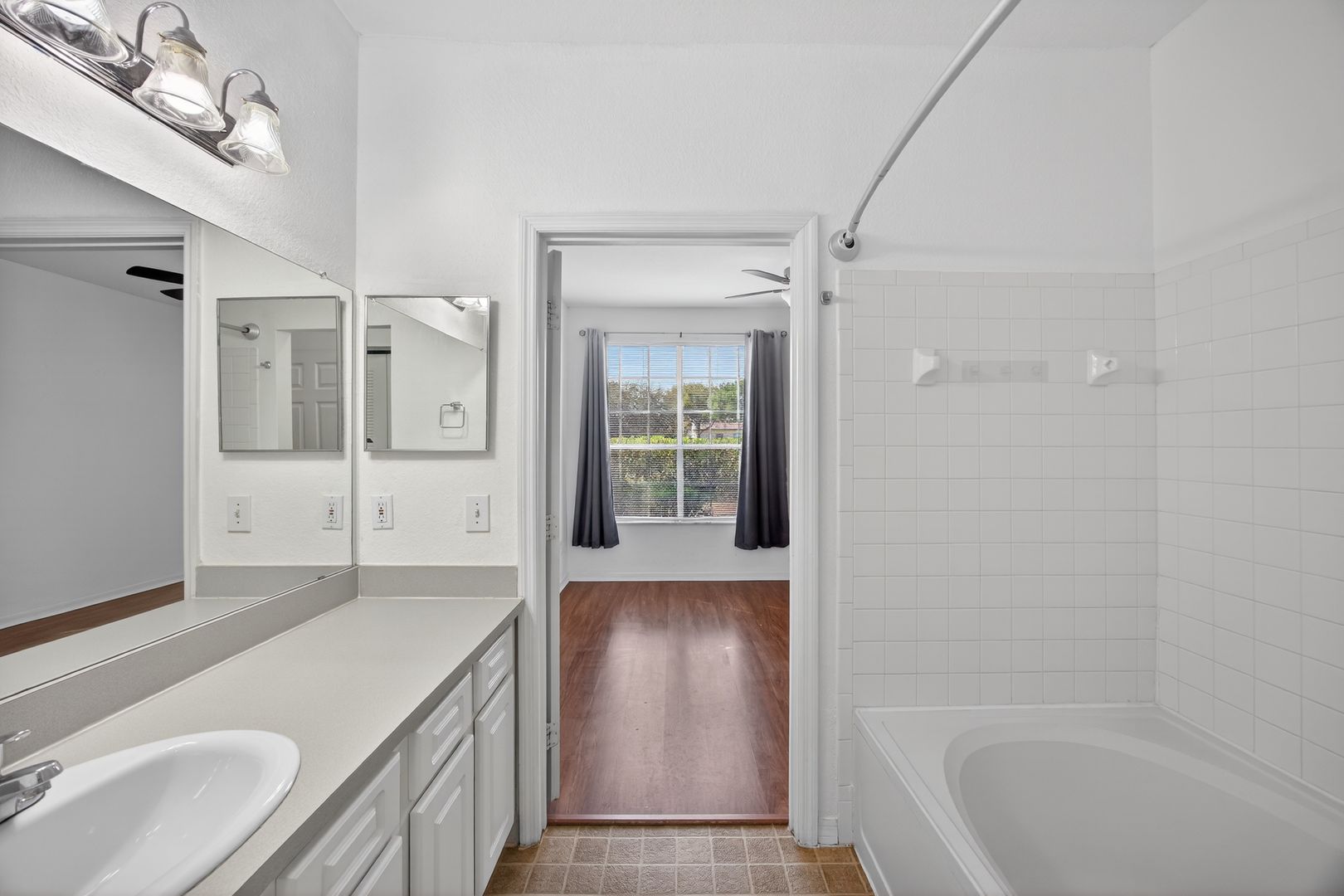 The generously sized bedroom offers plenty of comfort, while the large bathroom provides ample counter space—ideal for all your daily essentials and then some.