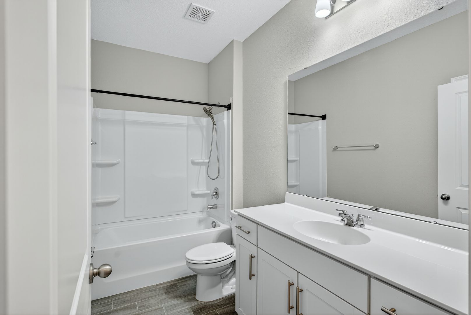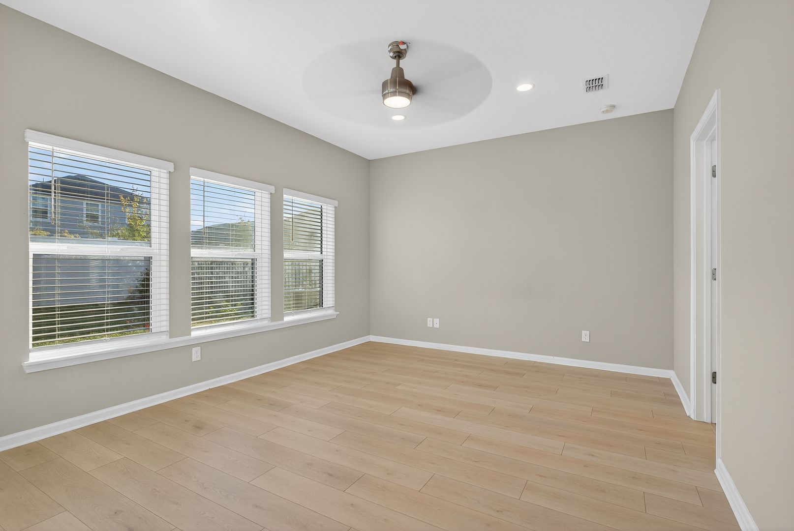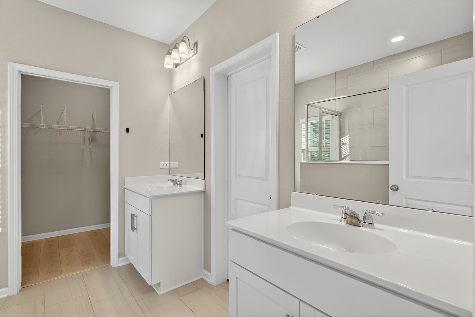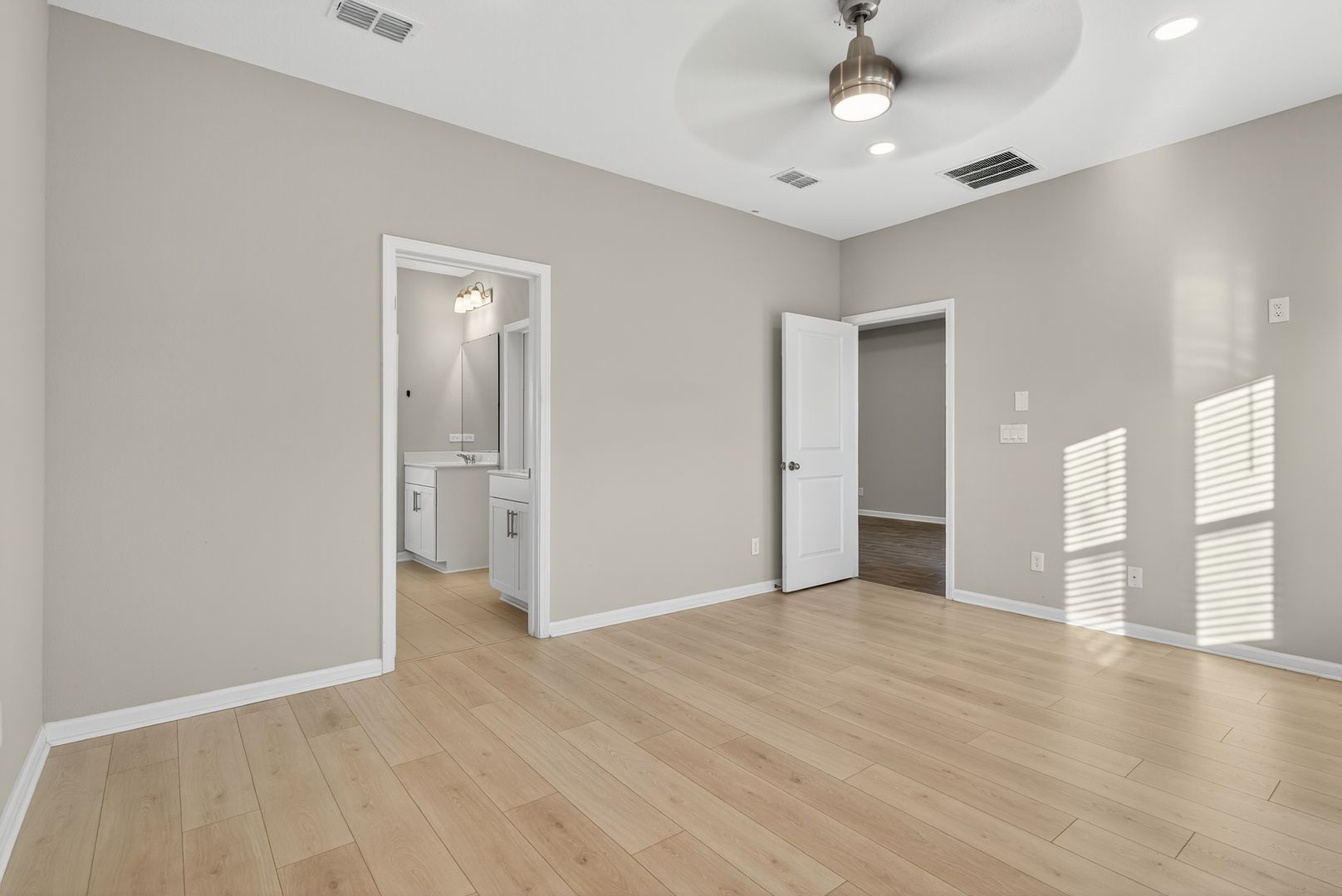 The great room features a stylish single tray ceiling and opens through a dramatic 9080 triple slider to the covered lanai, creating the ideal indoor-outdoor living experience. LVP Flooring adds warmth and durability throughout all common and wet areas. Located in a sought-after natural gas community, this home combines comfort, efficiency, and designer touches throughout.