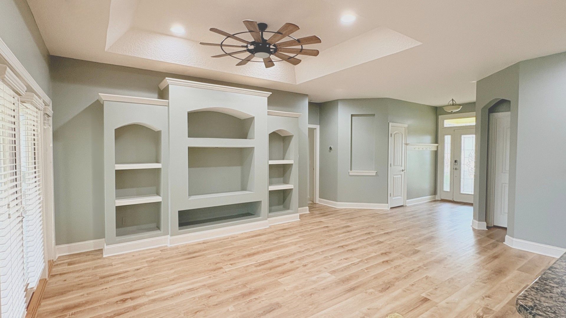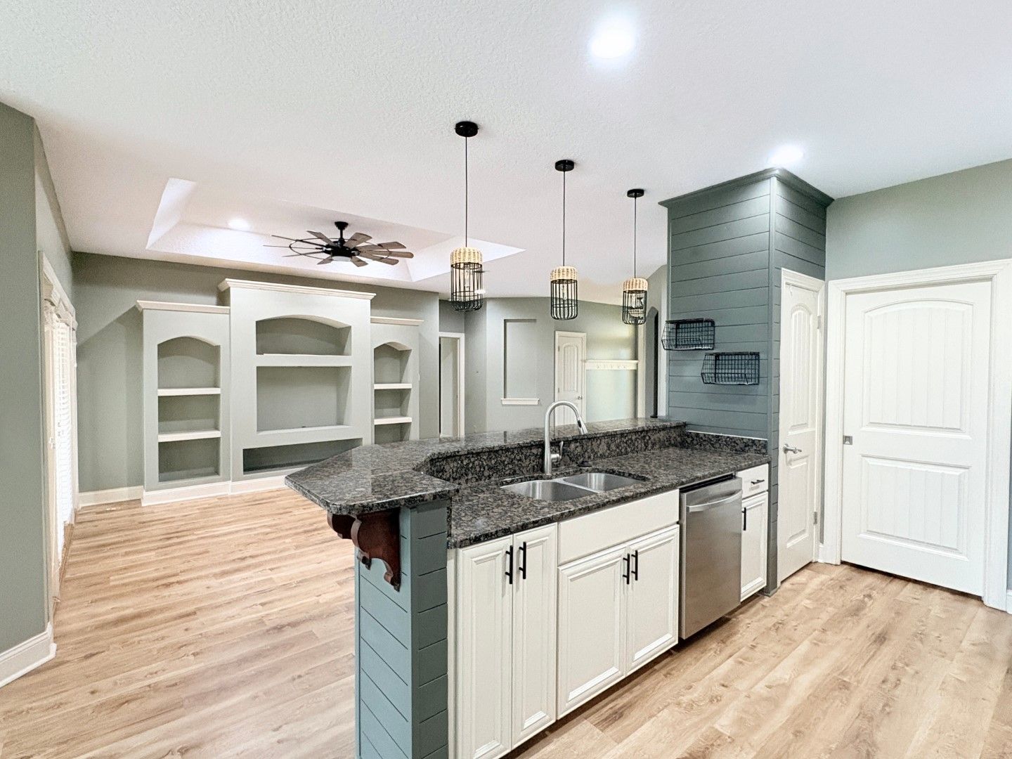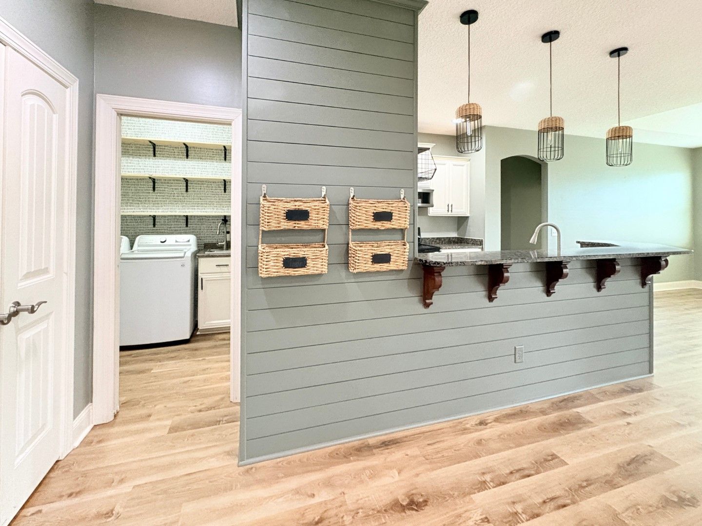 Beautiful Craftsman-style 3 bedroom, 2.5-bath home in the sought-after Winding River community. Split floor plan with open living space with custom-built ins for entertainment and storage. Spacious kitchen with granite countertops and stainless-steel appliances. Screened in patio overlooking large pond. Fenced in yard. Tile flooring in living areas and carpet in bedrooms. The conveniently located bright& clean laundry room with washer and dryer included, takes you out to the attached 2 car garage. Approx 1685sqft