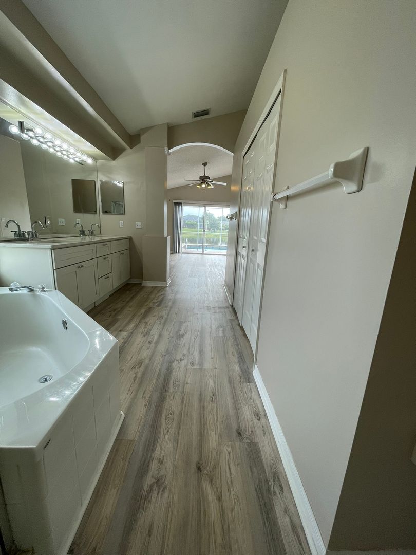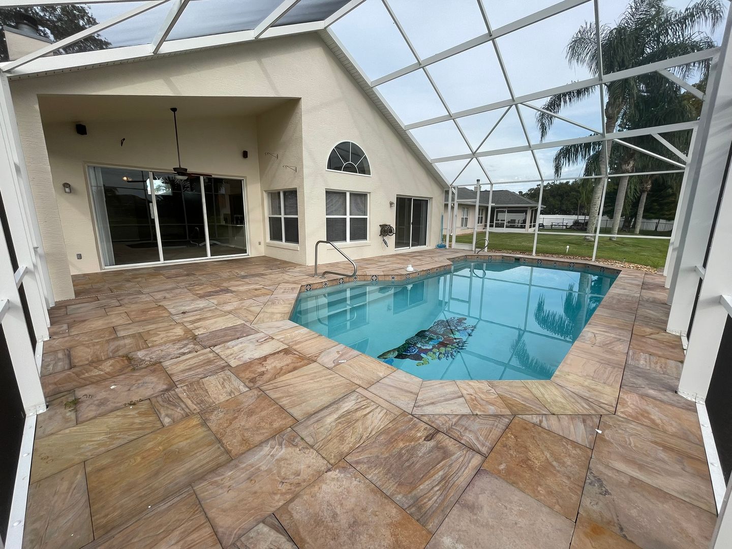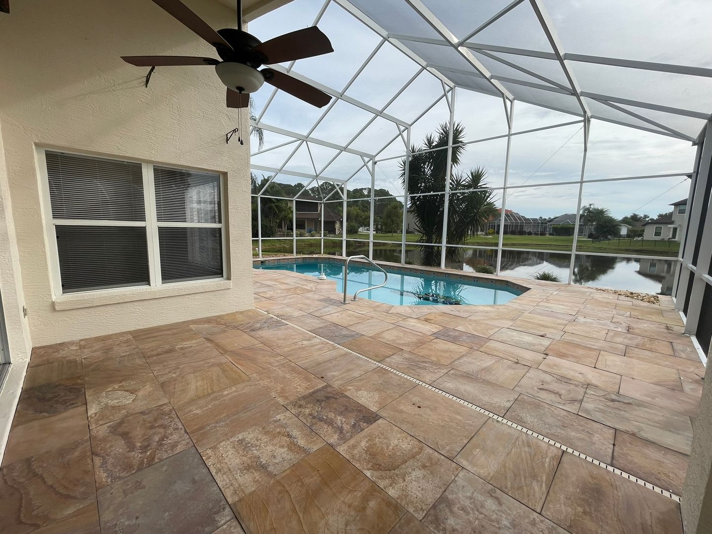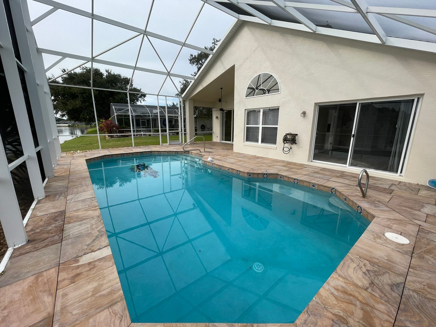 Enjoy serene lake views from this beautifully maintained waterfront pool home featuring a large, screened enclosure perfect for relaxing or entertaining. This spacious residence offers a split floor plan with a generously sized primary bedroom and en-suite bathroom for added privacy and comfort. Pool and lawn care are included in the rent, and pets will be considered. Tenants will be enrolled in the Resident Benefit Program. Don't miss this opportunity to live in a peaceful, scenic setting with all the conveniences of modern living!