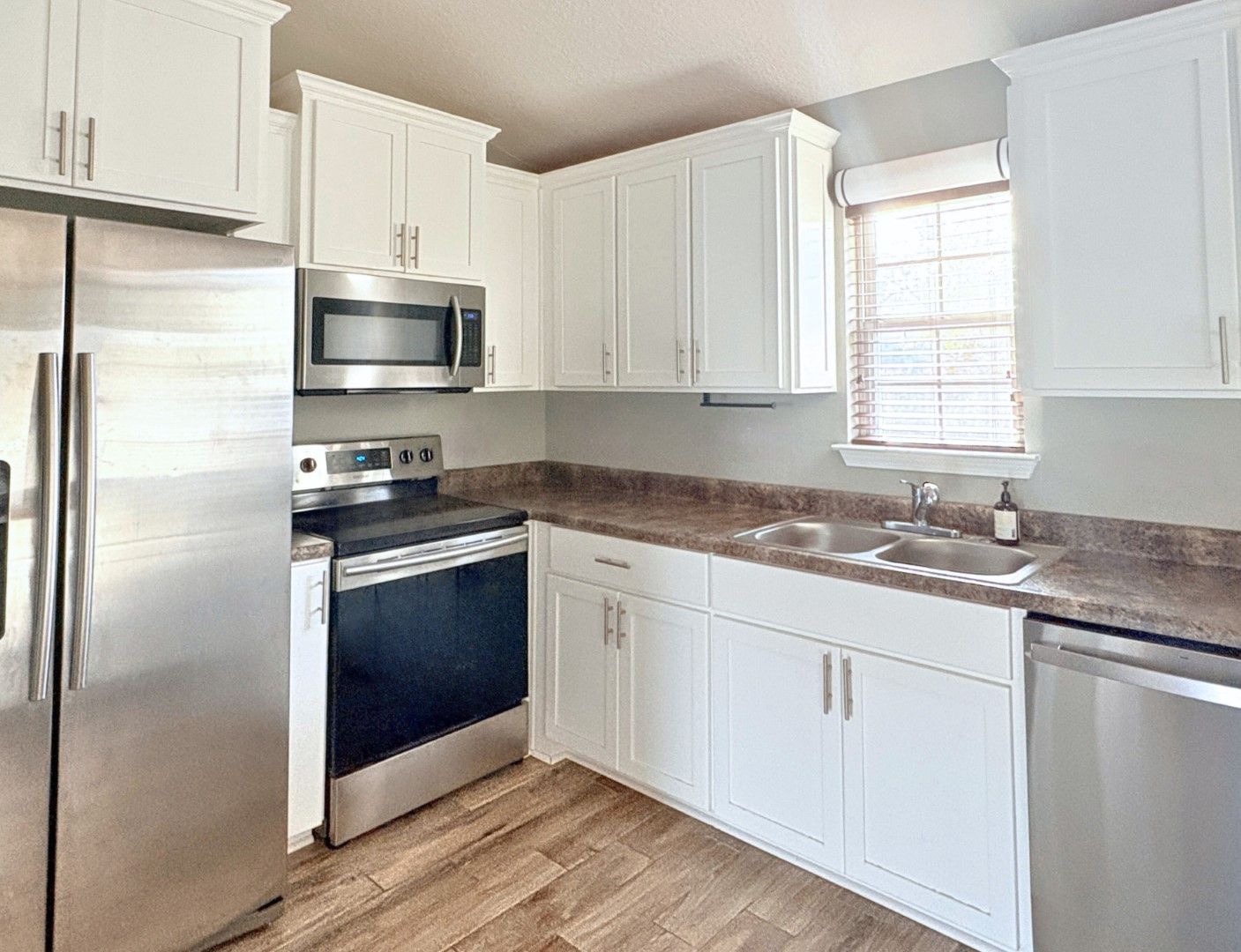 Nice home in Lakevine South subdivision in “The Lakes” area in Kingsland. 4 bedrooms, 2 full baths with a 2 car attached garage. Spilt bedroom floor plan with Open Living spaces with high ceilings and nicely remodeled kitchen with stainless steel appliances. Approx. 1625 sqft. Patio off living area opens into huge, fenced back yard. Luxury vinyl wood-plank flooring in living areas and carpet in bedrooms. Laundry room located off kitchen. Home is less than 3 miles to I-95, and minutes from, Camden County High School, PSA Recreation center, and Local Library, and more. Located in Camden County Georgia.