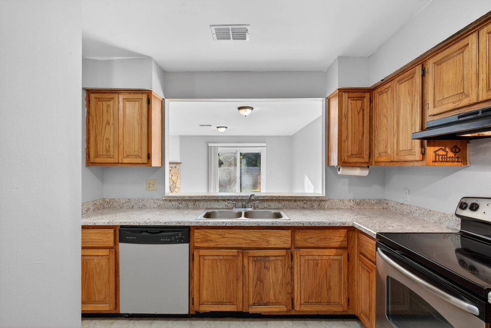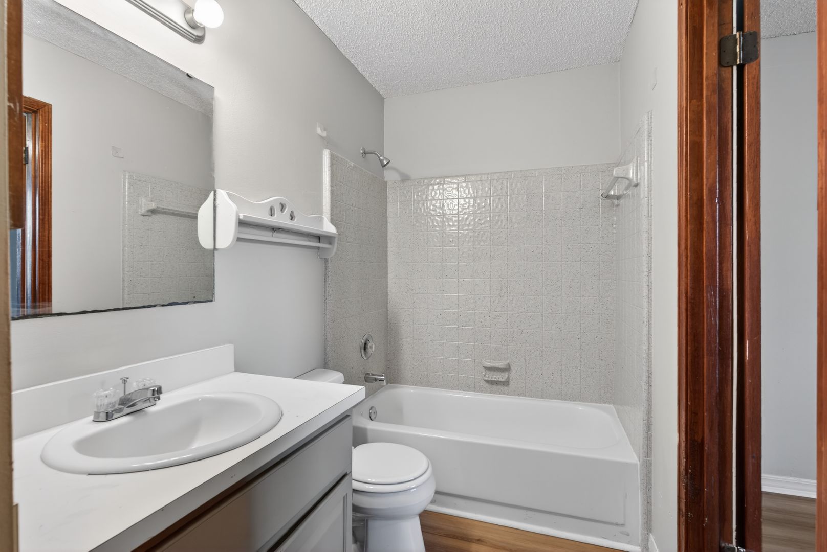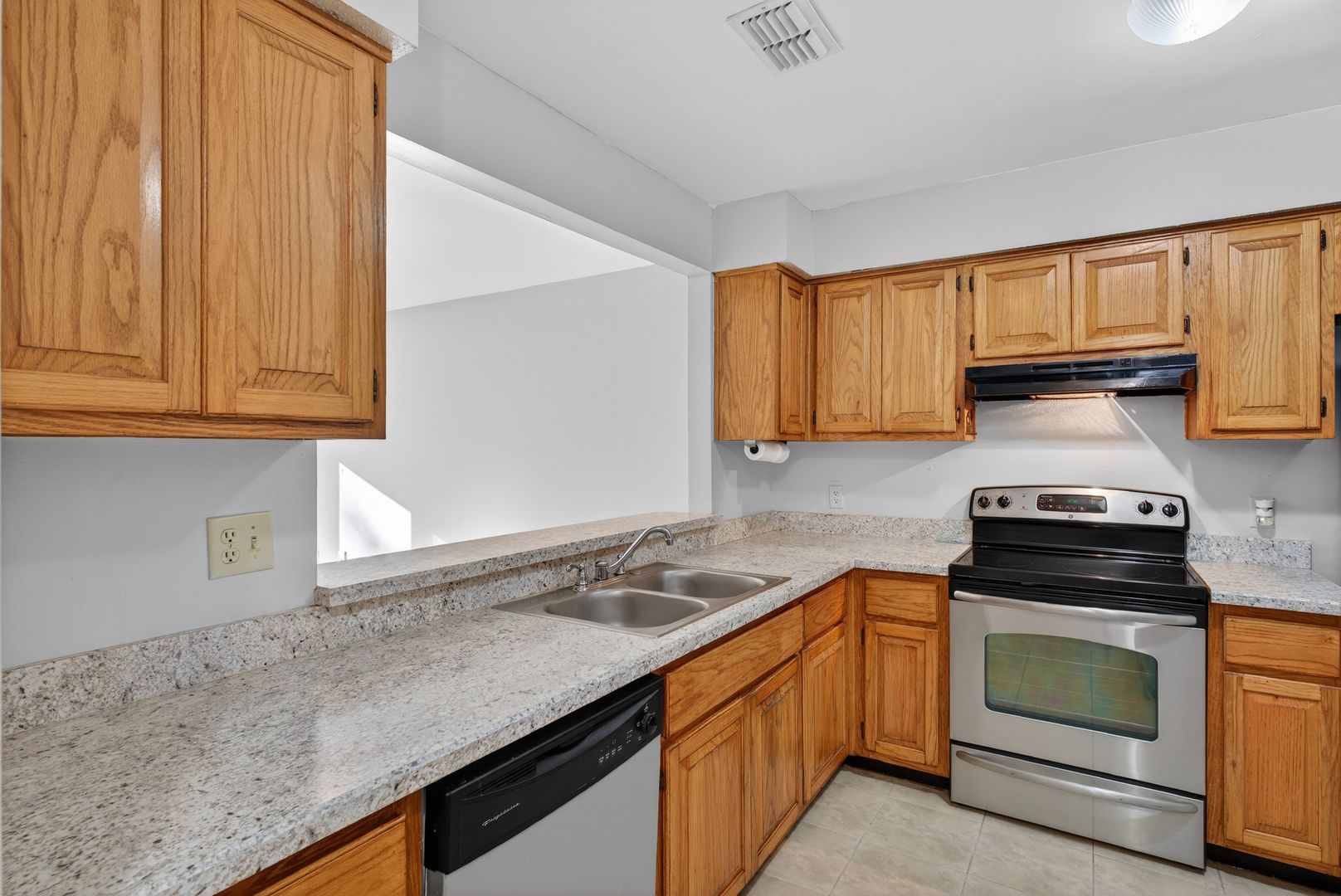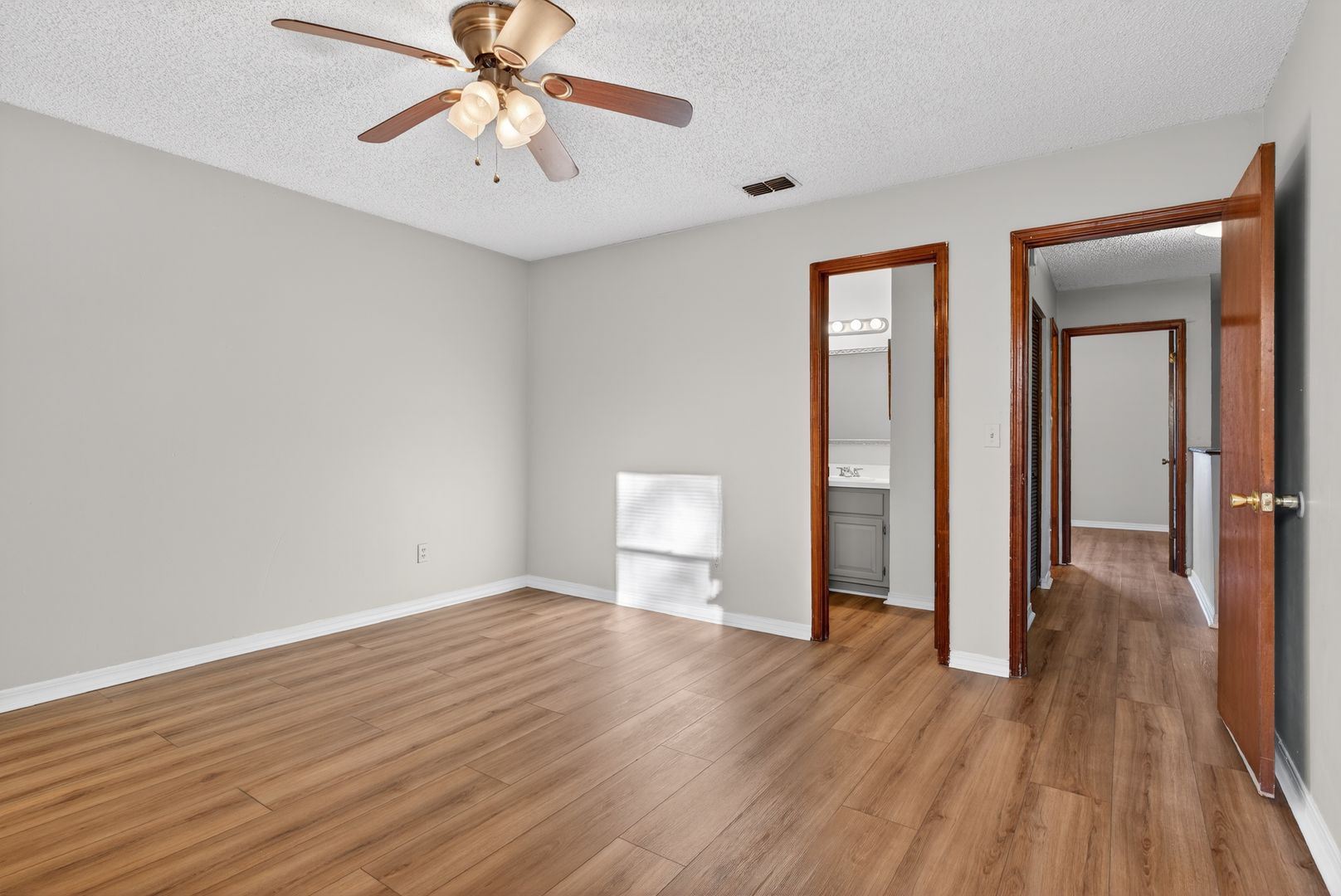 Updated 3BR/2.5BA townhome with fresh paint and new LVP flooring. Two spacious upstairs bedrooms each feature private full baths. Main level includes an additional bedroom, half bath, and living/dining combo with wood-burning fireplace. Kitchen offers stainless dishwasher, electric stove, newer refrigerator, ample cabinetry, and walk-in pantry. Oversized fenced backyard. Move-in ready.