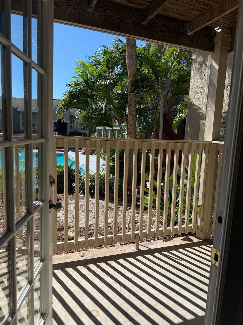 This studio apartment is located on the first floor with large living/bedroom bedroom. There is ample space to divide the room so it works for you. French doors open out on the private patio overlooking the sparkling blue pool. The bathroom features plenty of counterspace and large closet to maximize storage. The kitchen has space for a bistro table if you prefer a separate eating space or room to add a portable island or coffee bar for additional storage. Community amenities include pool, tennis, basketball, racquet ball, picnic/barbeque areas and a sauna. Pets by approval. *HOA requires separate approval, application is $100 per adult*