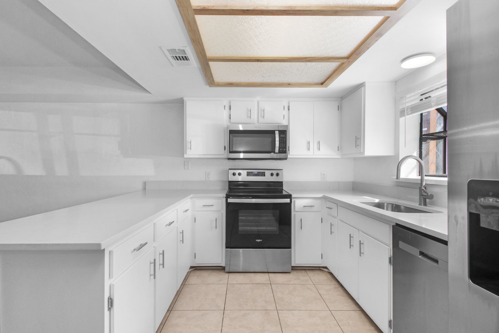 Welcome to this beautifully updated townhouse at 401 Terrace Court in Sanford, offering style, comfort, and convenience in a prime location. This 2-bedroom, 2.5-bath home features a remodeled kitchen with stunning quartz countertops, counter-depth breakfast bar, and stainless steel appliances. The inviting living area showcases a wood-burning fireplace and luxury vinyl plank flooring throughout. Both bathrooms have been tastefully updated, including a walk-in shower in the primary suite. Additional highlights include a new water heater, 2022 A/C, Tesla charger, inside laundry area, two assigned parking spaces with additional parking. A large covered porch provides flexible space for entertaining, a home office, or creative pursuits. Conveniently located near Seminole High School, with easy access to SR-417, shopping, and historic downtown Sanford, and just 40 minutes to the beaches and theme parks. This townhouse offers exceptional Central Florida living.