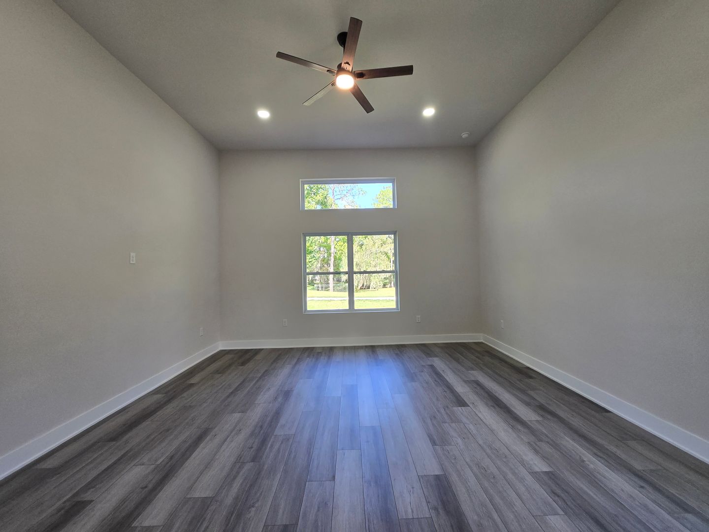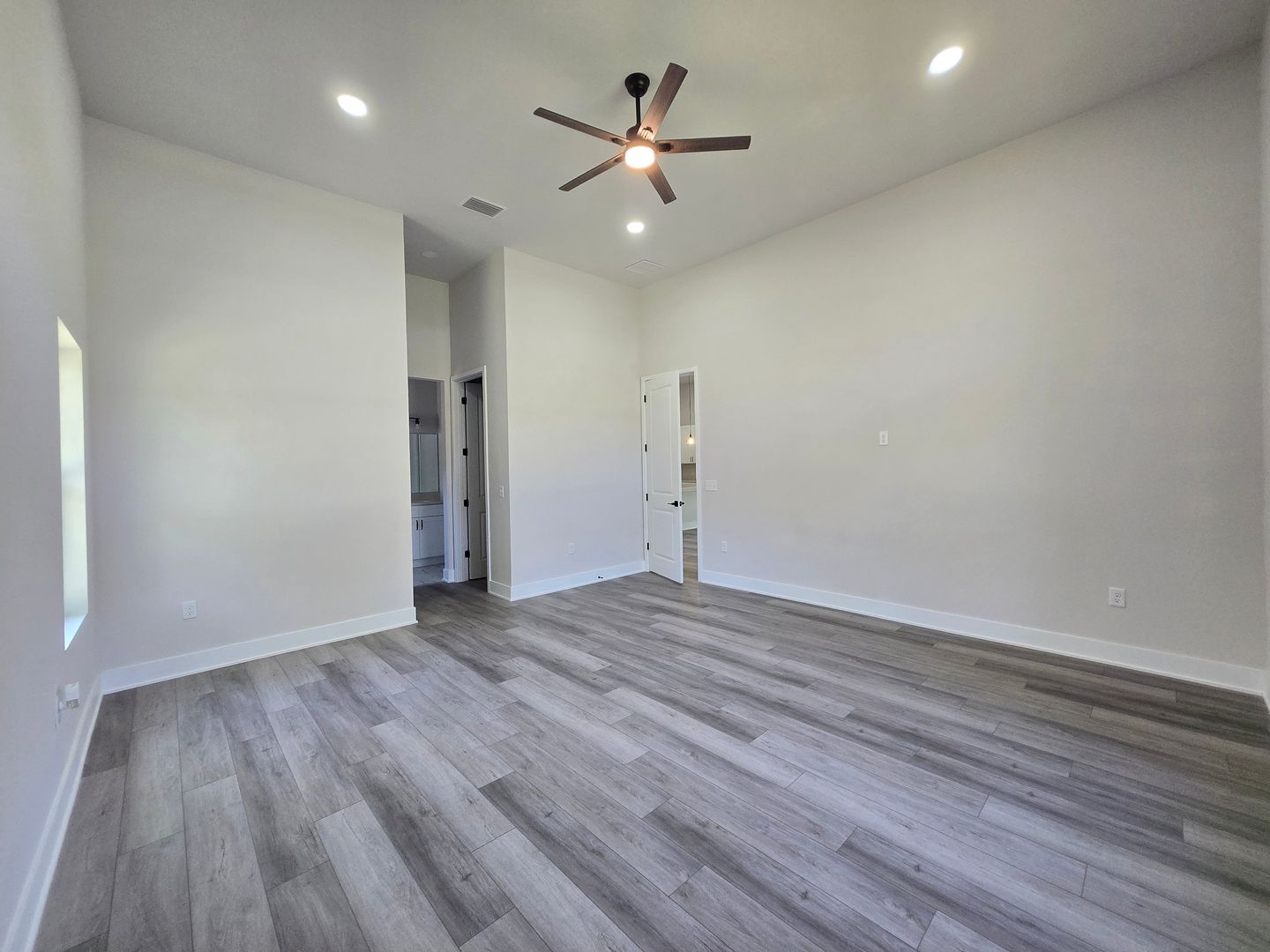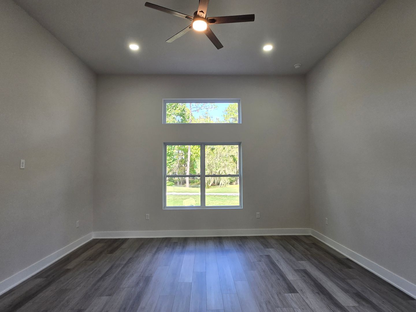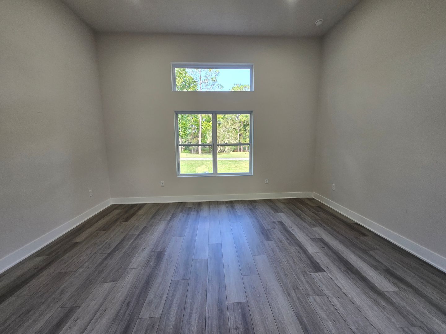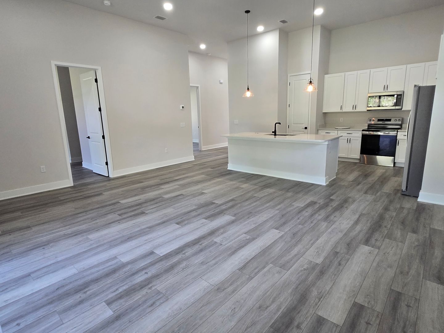 Relax in the luxurious primary suite, complete with two walk-in closets and an en-suite bath featuring a custom tiled shower stall and a double-sink vanity. The guest bathroom offers tiled floors, a single-sink vanity, and a tub/shower combo. Luxury vinyl flooring flows throughout the rest of the home, combining elegance with durability.
