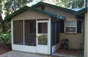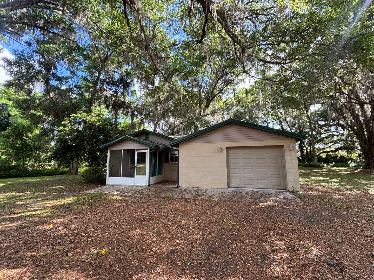 3/2 (Micanopy) Cute home recently renovated with all new flooring fixtures and vanities. Situated in the country under lots of live oak trees with completely fenced yard and on the edge of Paynes Prairie. Front screened porch opens into kitchen with new ceramic tiled floors, updated cabinets and newer appliances. Kitchen has large dining and serving bar that separates it from living room/dining room combination. Door off living room leads to big back deck. Large Study with ceramic tiled floors off of Master bedroom also has additional storage. Both bathrooms have nice neutral colored tile floors and tub/shower combination. House is on well water. 1 car garage has Utility room with washer and dryer included.