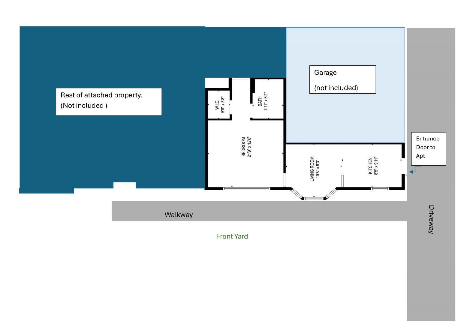 1 bedroom 1 bath studio suite "apartment" with kitchen and living area. Suite is attached to main home at 110 Lake Crest, but has separate private entrance.