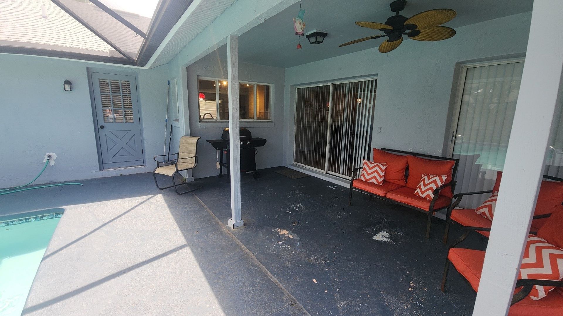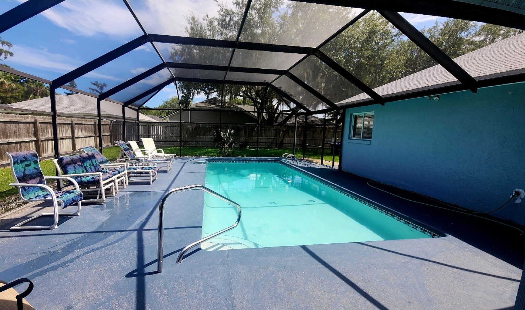 This Lovely home has it all! Enjoy living in this low maintenance Concrete Block pool home in the Woodlands of Palm Coast. This home offers 4 Large Bedrooms, 2 full Baths, Screen pool enclosure with large patio and fully fenced yard. Very spacious and open with over 2200 Sq. Ft, double sinks in each bathroom, with tile flooring in the wet areas and Brazilian Cherry wood floors in bedrooms and family room. This furnished house is move in ready with granite counter tops and new stainless-steel appliances. Call Today for more Information.